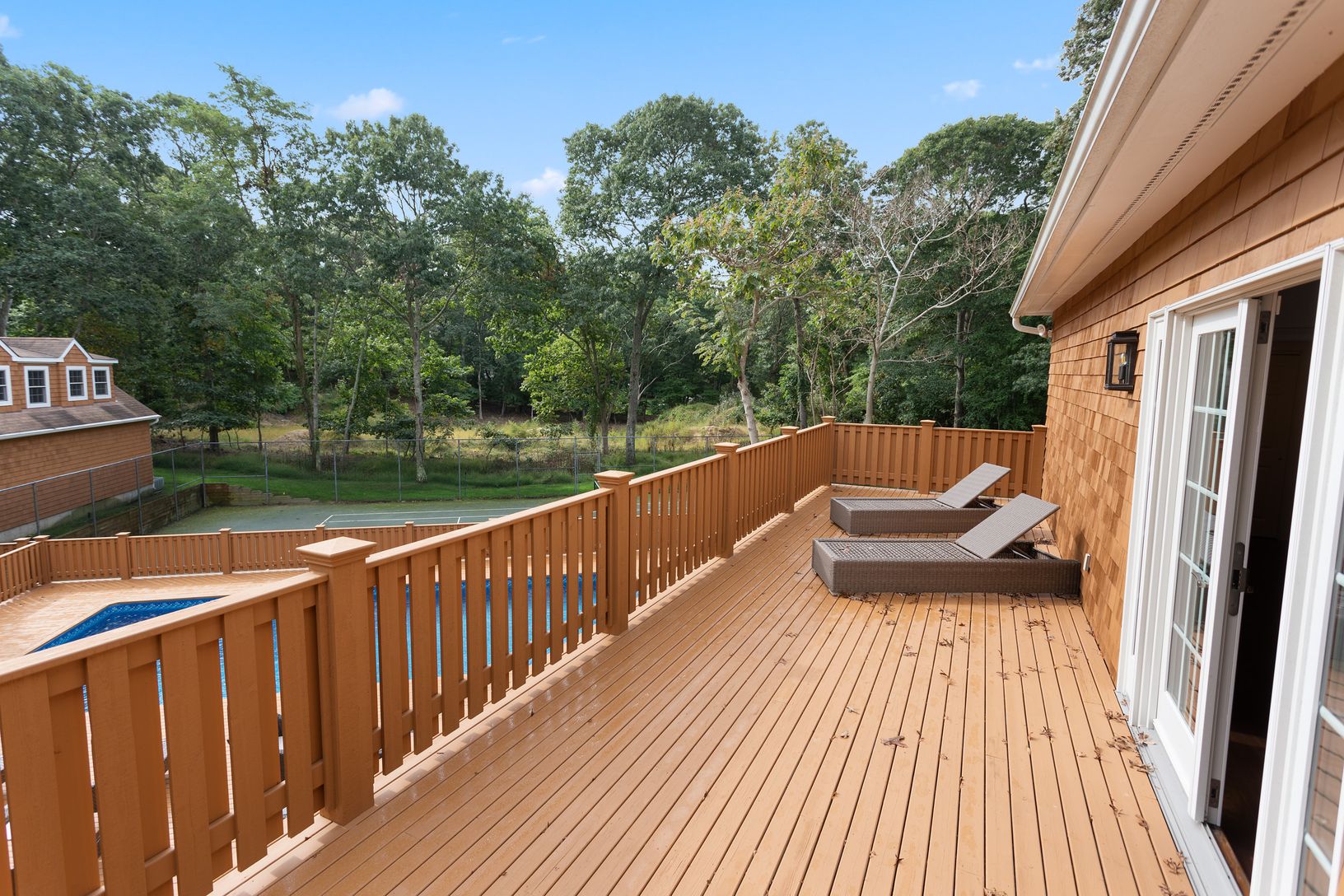 This brand new renovated home is the perfect summer getaway. Tucked away in the quiet woods of Southampton but only a short distance to Southampton village. Brand new custom kitchen with Wolf appliances and Sub Zero refrigerator with gas stove and wine refrigerator all leading out to a brand new expansive deck and new heated 20 x 40 pool Four bedrooms and two are en suite to provide ultimate privacy for you and your guests this summer season.