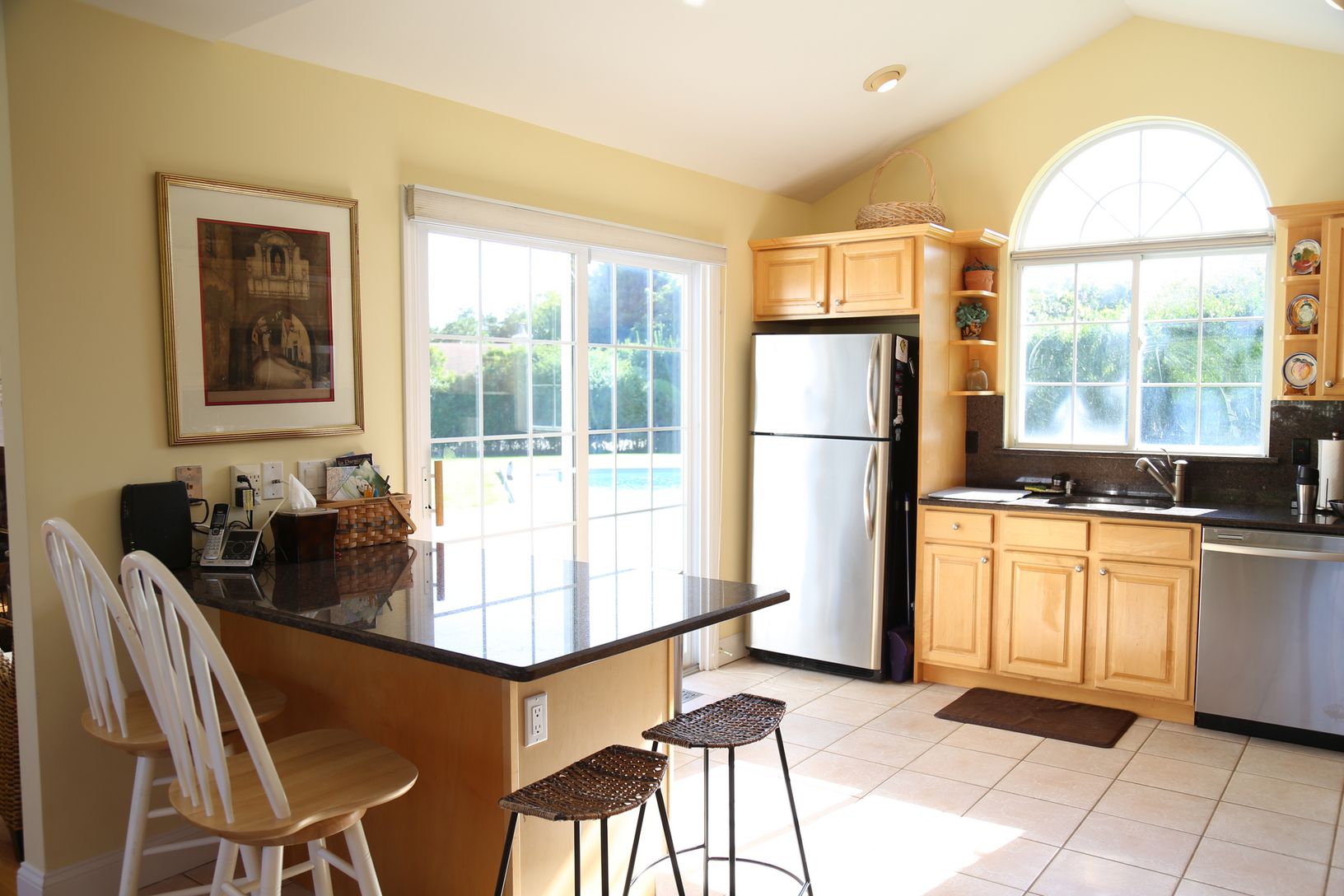 Pristine Village home with lush green, wide open private grounds. This nicely decorated home has four bedrooms (two of which are en suites), three full bathrooms, large open living area with formal dining, and a beautiful kitchen. The living area has beautiful views of the large heated pool surrounded by an expansive deck. The pool has a safety fence that goes directly around the pool and the house has no through traffic close to home. The loc