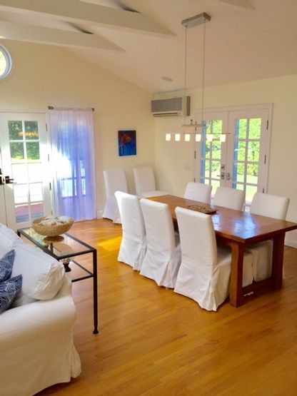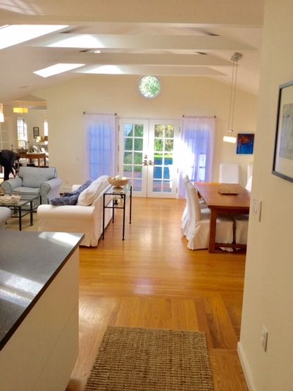 Completely renovated and beautifully furnished Village home with four bedrooms and three full bathrooms. The modern home has 2 fireplaces, a gourmet kitchen with quartz countertops, an open cathedral ceiling, sun-filled, sky lit living/dining area with French doors that lead out to a private landscaped yard with patio and heated pool. Close to restaurants, ocean beaches, and shops. Updated for 2020.