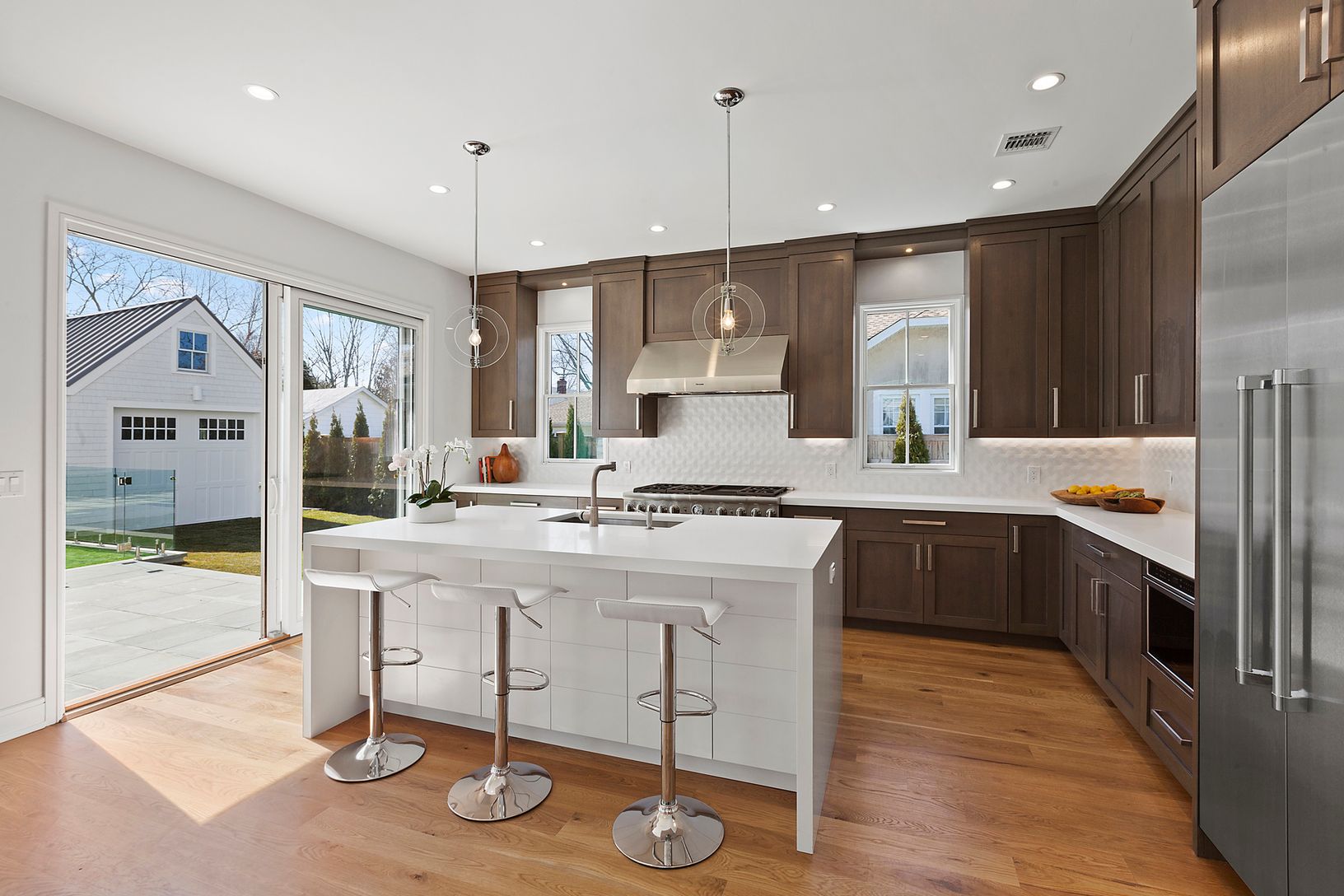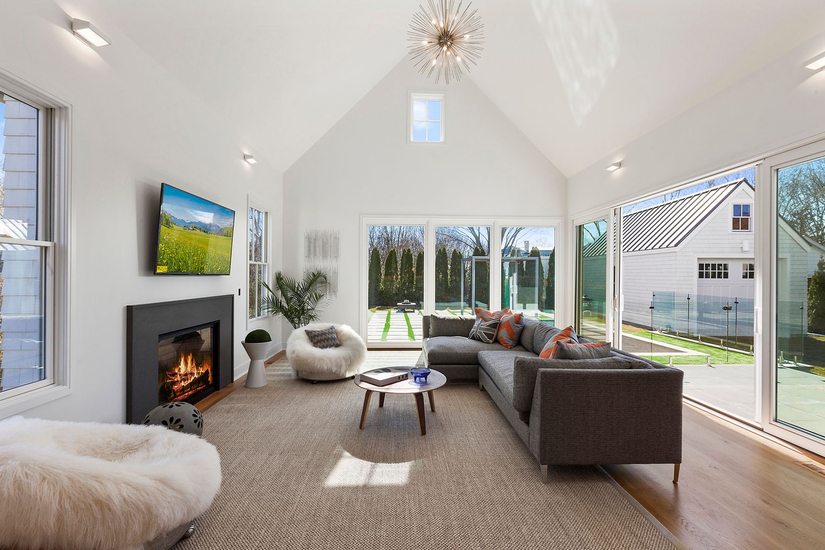 Cutting edge design elements make this brand new construction in Southampton Village the antidote to the cookie cutter approach. The traditional shingled exterior with standing seam roof blends effortlessly into the Village aesthetic while the sleek and modern interior spaces are still warm and inviting. Gourmet custom kitchen with stainless steel appliances and giant center island, vaulted ceiling living room with fireplace and walls of glass