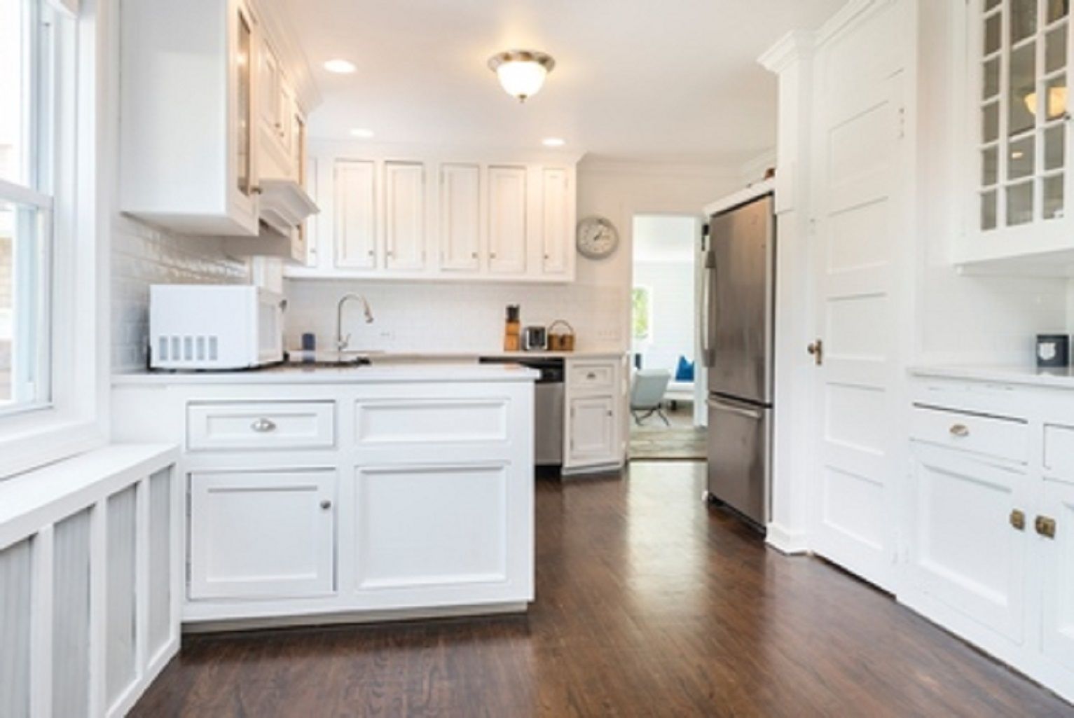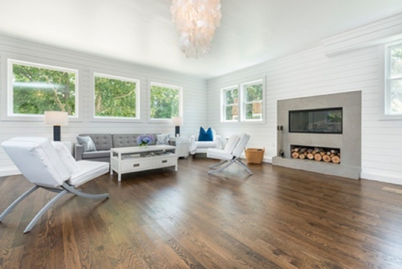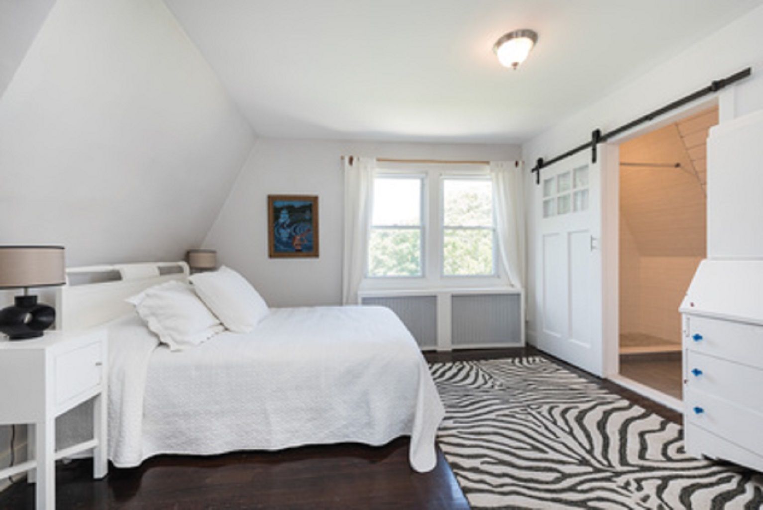 Built on an old Southampton working farm with large specimen trees, acreage and privacy, this south facing home, expanded and renovated in 2018-19, has sun filled interiors and combines carefully renovated details with new amenities. 4 bedrooms all ensuite, with optional 5th bedroom, a shiplap living room with fireplace, double height master with exposed beams, dining room with original wainscoting and fireplace, calacatta quartz countertops w