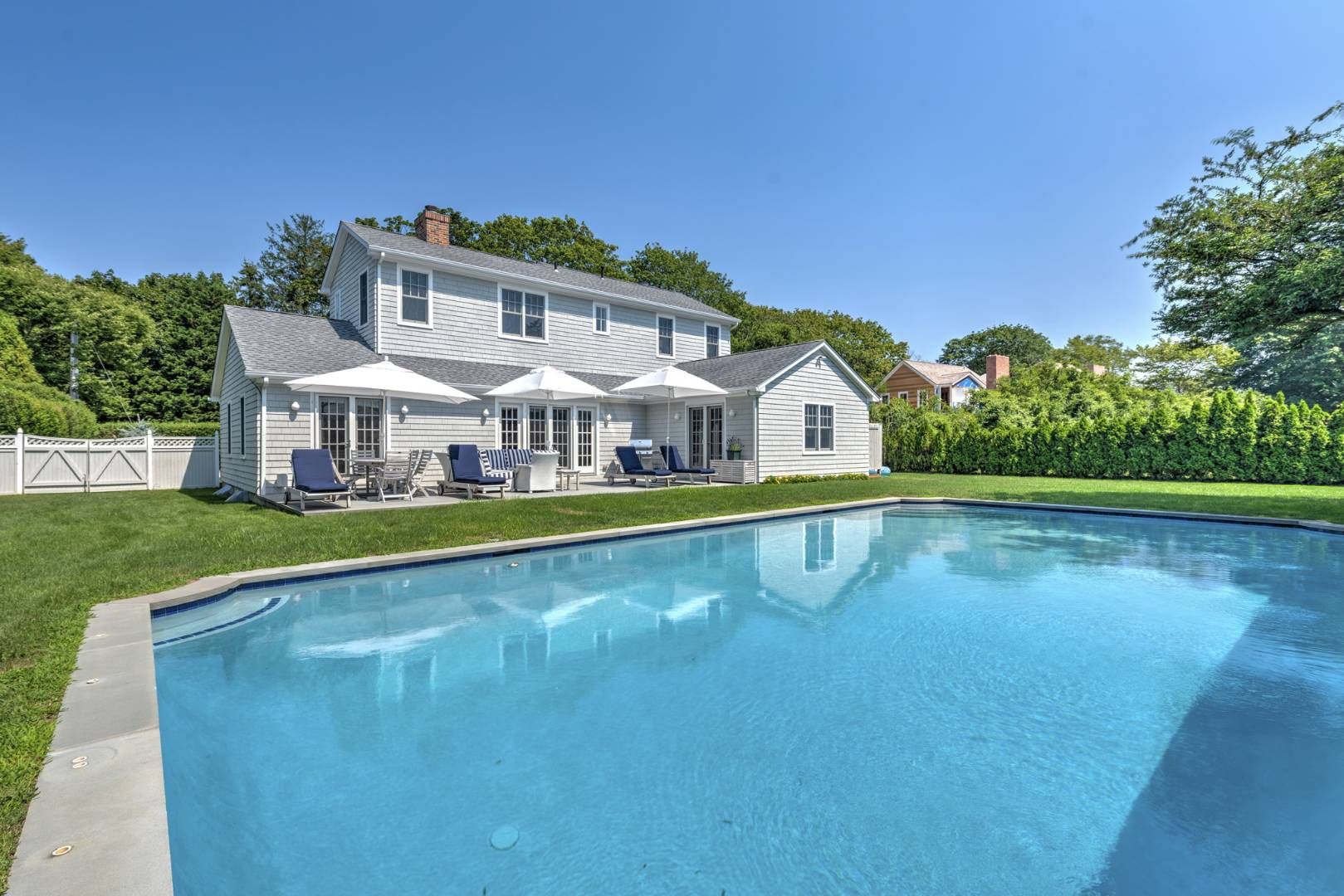 This new construction is located just two blocks from Little Plains Beach and features five ensuite bedrooms [2 masters], five bathrooms, a family room, central air-conditioning and a heated Gunite saltwater pool for your enjoyment. Downstairs bath has a Jacuzzi tub, one of the upstairs bathrooms has a large steam shower. Outdoor shower near pool. Burglar alarm and pool alarms on doors for added security. Washer and dryer conveniently located