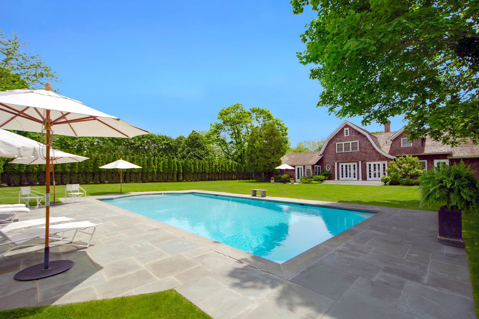 This classic Hampton home was recently renovated by a well-known architect and is encircled with matured trees and thick privet hedges for full privacy. Particulars for this lovely family home include 6 bedrooms (including a first floor master) 4 full bathrooms, a gourmet kitchen, formal and informal dining rooms, central air conditioning, heated gunite pool and a large slate patio. Extended season possible.