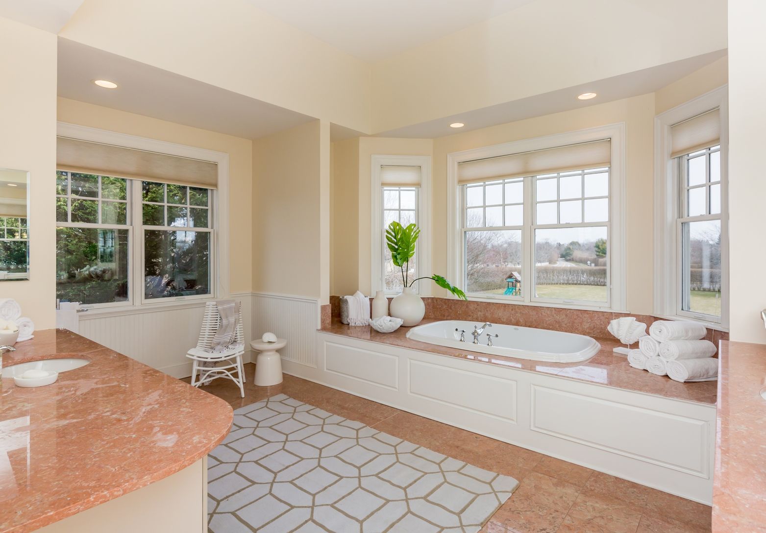 Magnificent, estate-quality, gambrel-style home, in Wickapogue section of Southampton Village, a mile from the ocean. Set on four landscaped acres, with 9000 sq. ft. of living space, this gracious residence offers multiple living areas, renovated chef's kitchen, seven bedrooms, eight baths, powder room, pool, tennis, and garage. Every amenity inside, and tremendous views outside. Available summer or year-round.
