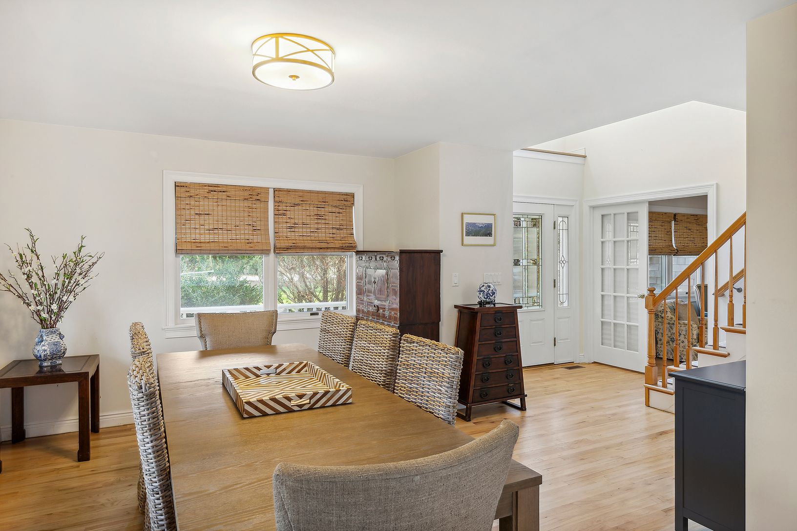 Privately situated on over an acre, this four bedroom traditional home is also very close to Southampton Village amenities and is far enough West to offer a convenient commute to the Hamptons. The open floor plan features an updated kitchen with granite counters, center island and breakfast area. There are double sitting rooms attached and a formal dining room with piano. With access to the rear deck and pool area the great room has views of t