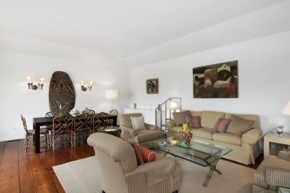 South of the highway and a stones throw to Village, this rambling home, once owned by Gary Cooper, on 2 acres, offers five bedrooms, three baths, living room with fireplace and walls of glass looking out to the heated pool and sweeping lawn down to the pond.