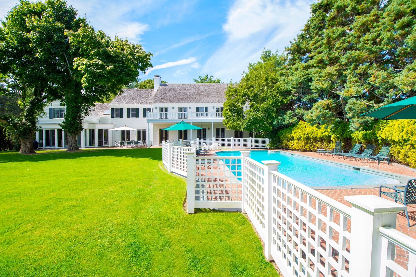 All of the desired amenities await you in this fabulous five bedroom, six and one-half bath home. There is a beautiful living room, up to the minute kitchen, breakfast area, formal dining room, sitting areas downstairs and upstairs and lovely, rest-enhancing bedrooms. The master has two bath rooms. This home is artfully decorated throughout. Sited on two acres in the Estate Section of Southampton Village, it includes a heated pool, a pool hous