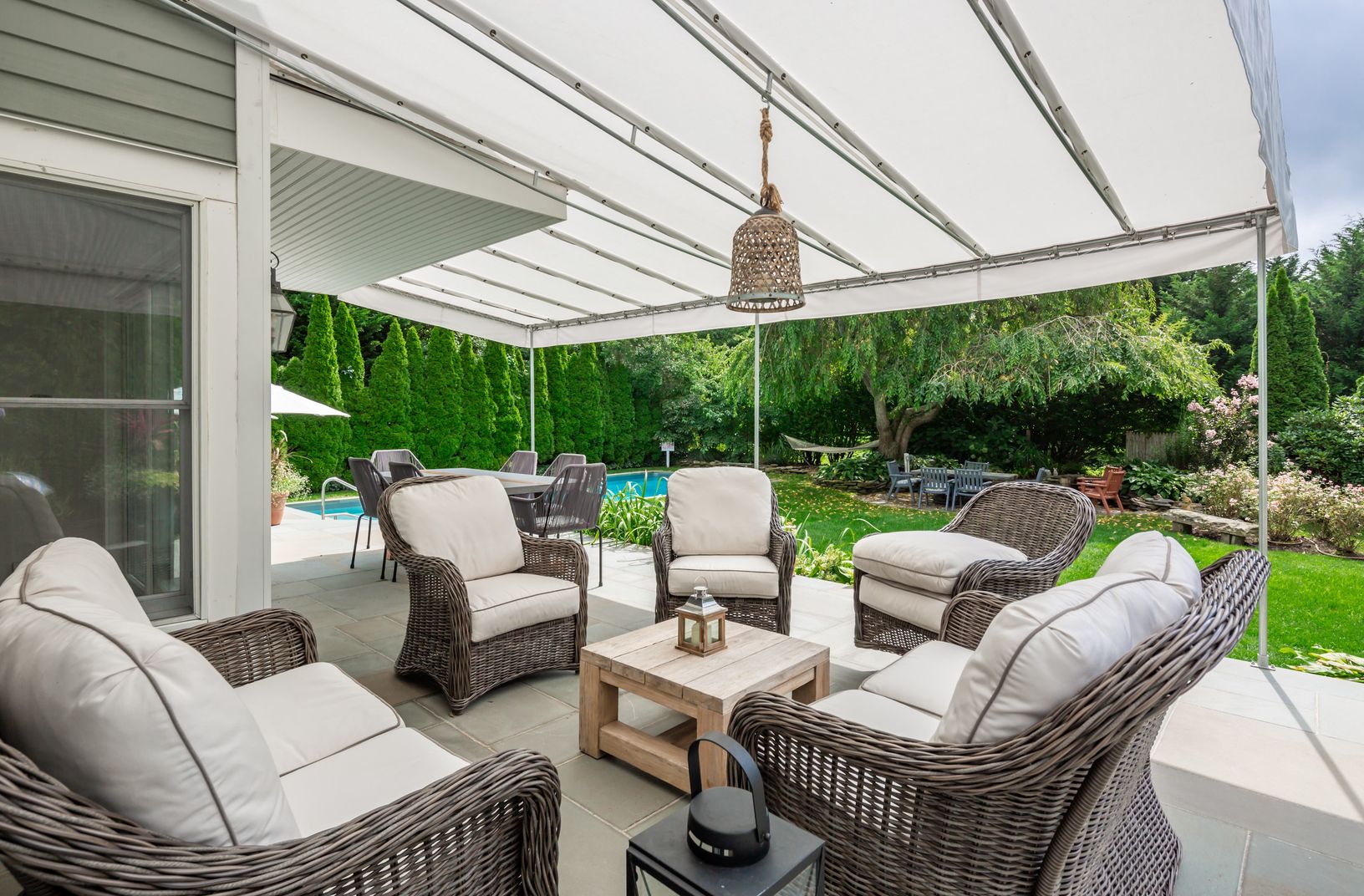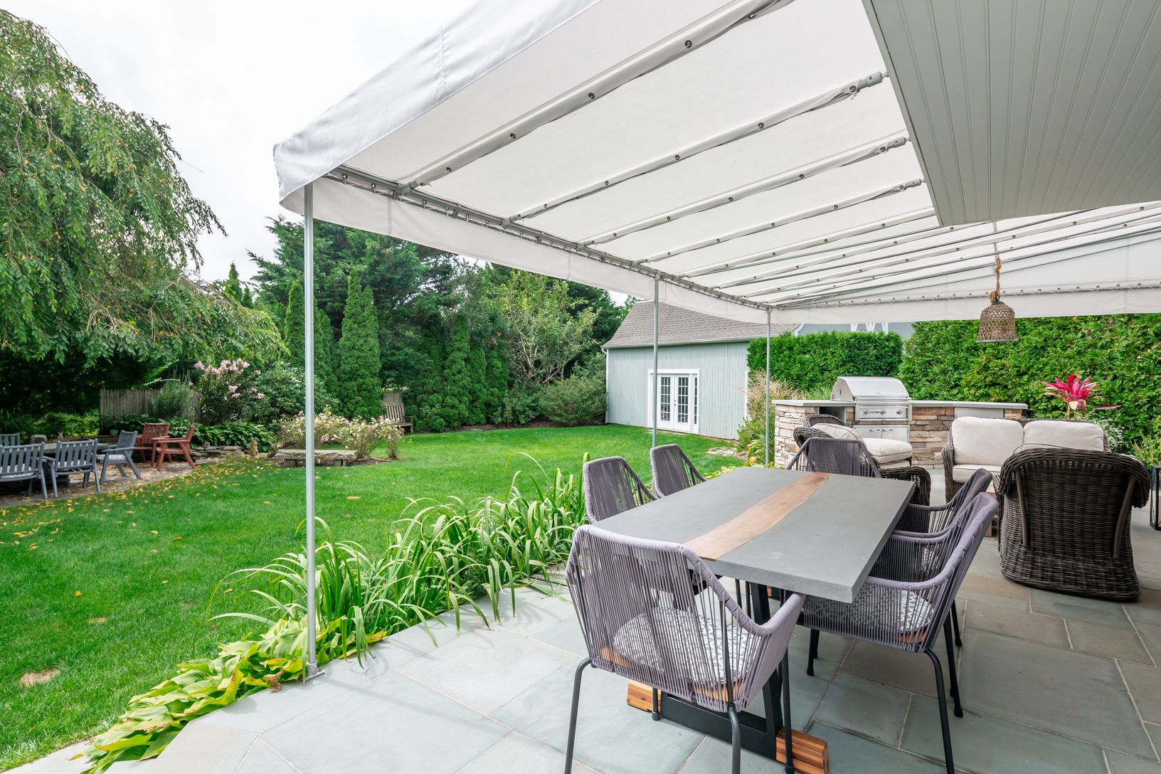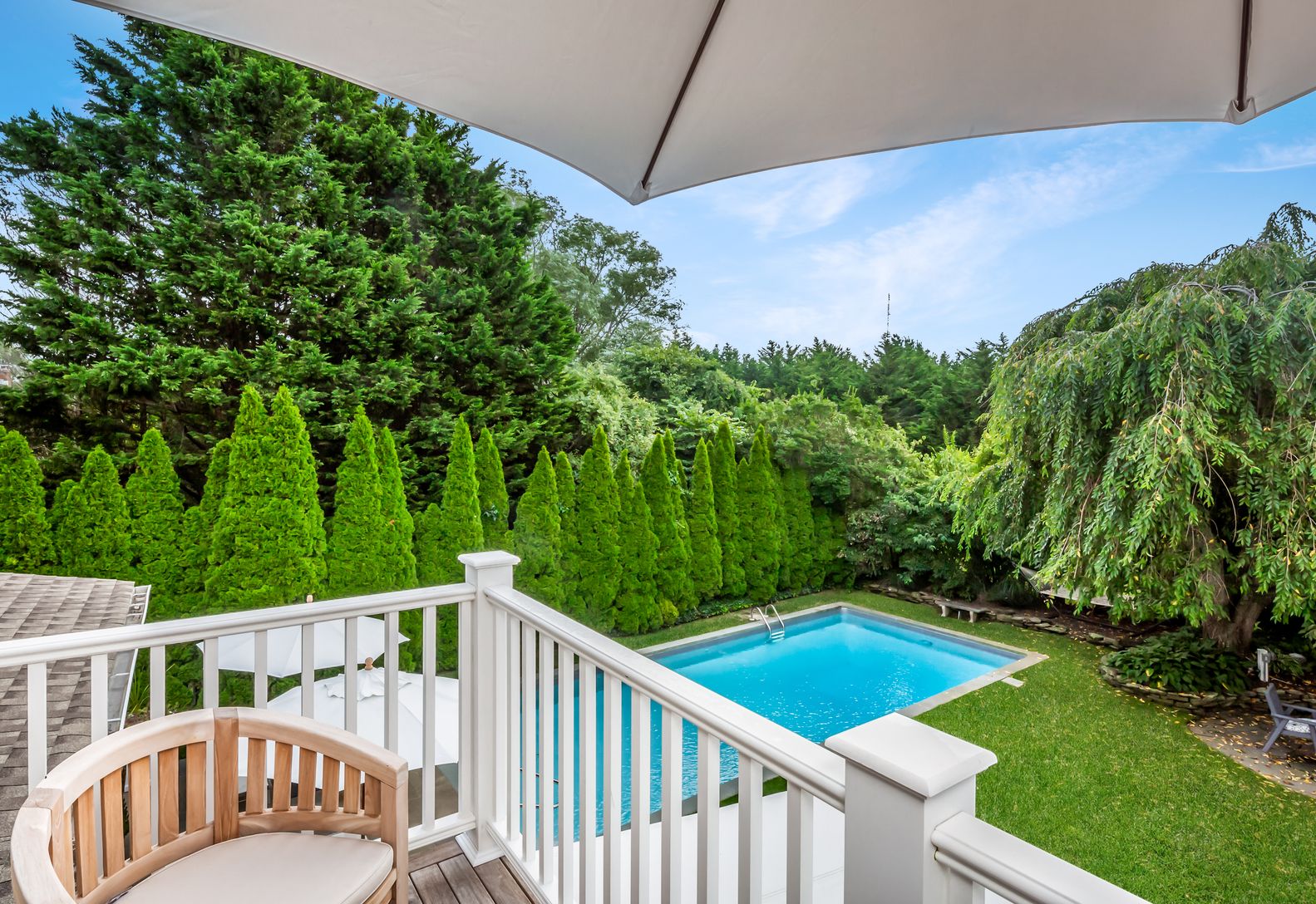 This cozy Southampton home is 1-mile to center of village, ½ mile from Jitney and Train station. Beautifully decorated home with 2 masters (one up and one down). Upstairs master has a balcony overlooking the property. There is a bath in finished basement with exercise area, media area, and access to outside pool area and outdoor shower. Very private and beautifully landscaped backyard with outdoor speakers and inviting areas for leisure. F