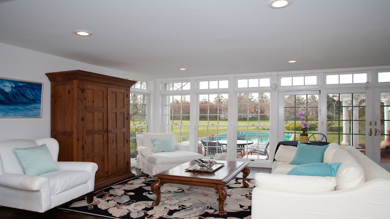 This newly renovated and beautifully decorated Hamptons farm home is located just seconds from the heart of Southampton Village! Unique, country charm surrounded by fruit orchards, horse farms, and acres of privacy! 4 Bedrooms, 4 Full Baths, 1 Half-Baths. Gorgeous grounds and patio terrace, in-ground pool, plenty of room to spread out, yet cozy. New kitchen and dining areas. Huge 24 x 60 foot gym! Outdoor Shower. 1st Floor Master Bedroom.