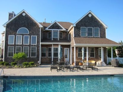 Wonderful cedar shake traditional is now available for summer with all the amenities and close to the village: Double height ceiling living room with a wall of windows to let the sun flow through...fireplace and lovely furnishings throughout. A total of 5 bedrooms, 5.5 baths, fully finished basement with gym, game room with pool table, master suite on the ground floor and second floor, 20x45 heated Gunite pool, central air conditioning, comm