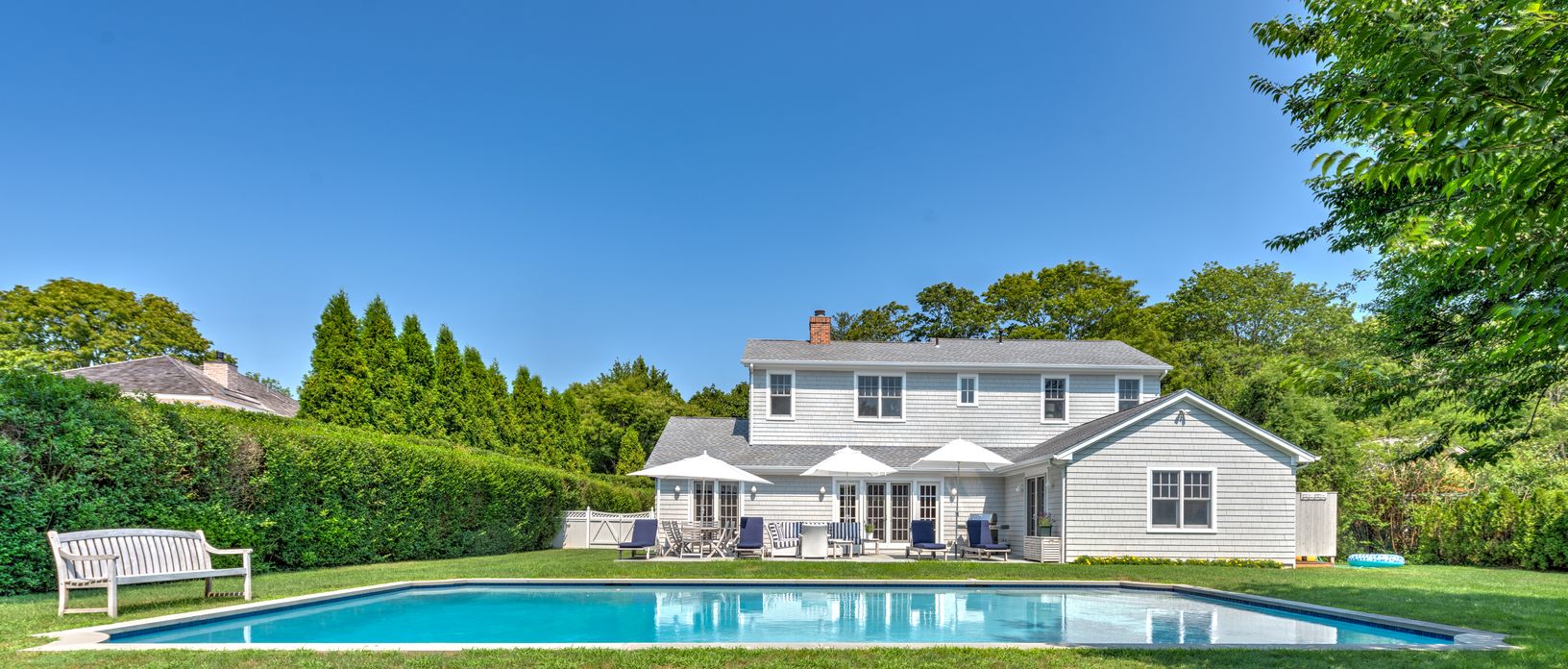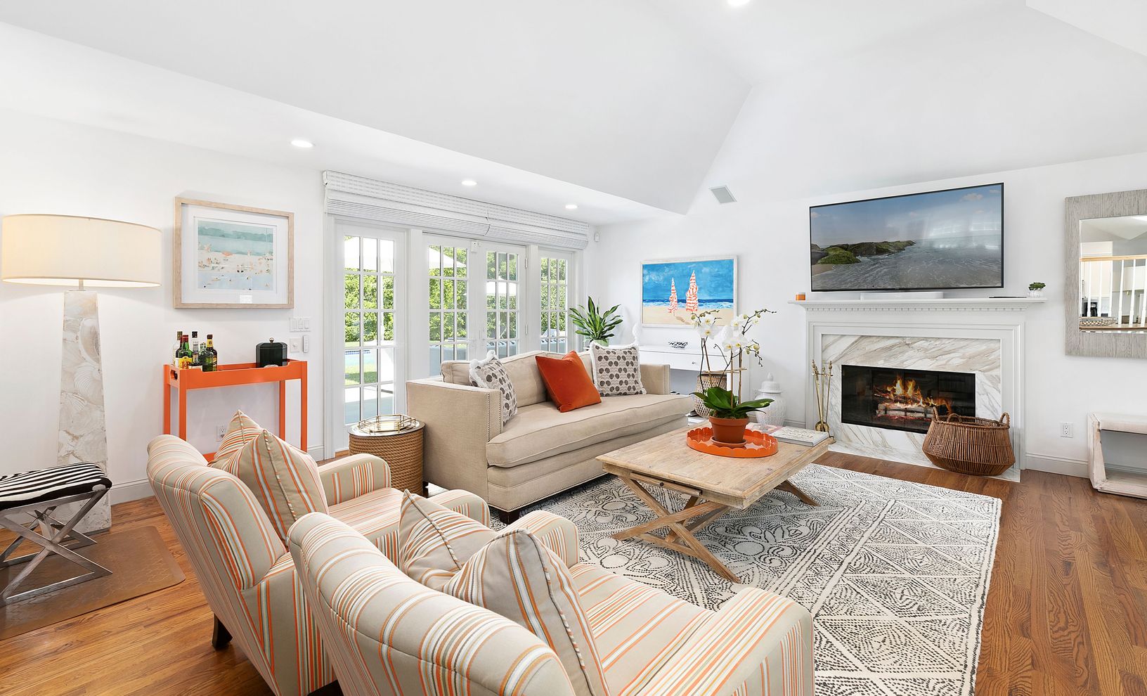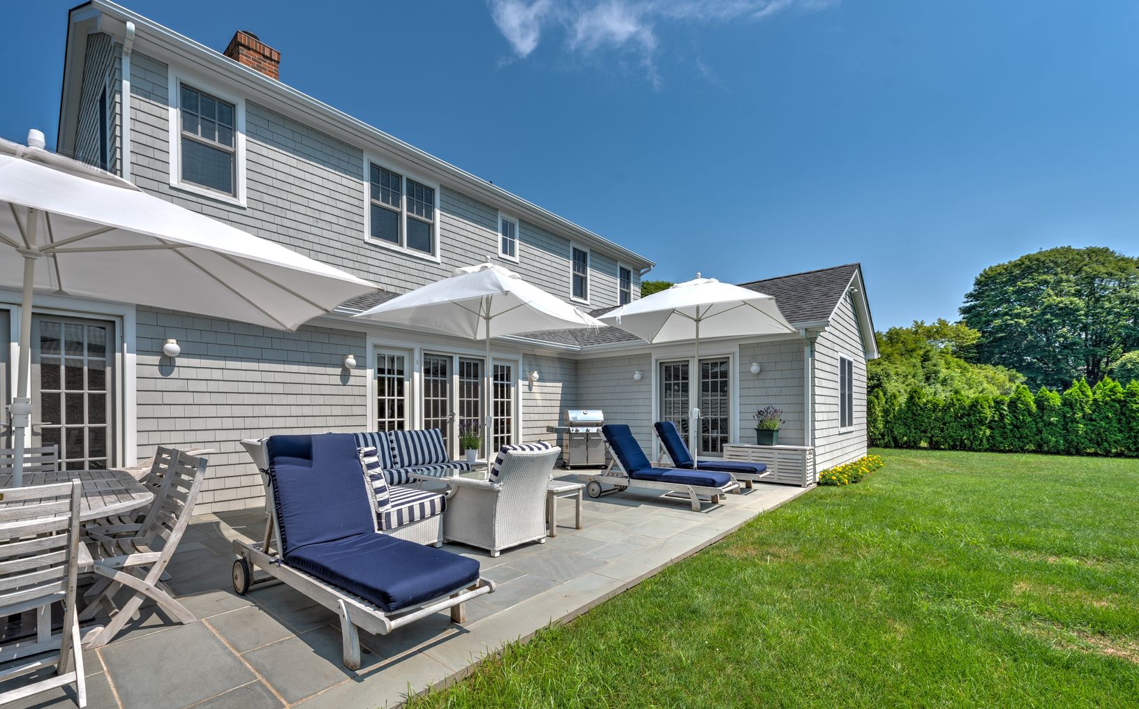 Beautifully decorated and well maintained South of the Highway Traditional with fabulous heated salt water gunite pool and patio. Light & bright open floor plan perfect for your care-free Summer. Living Room with fireplace, Family Room with fireplace, first floor Master Suite & junior Master Suite, plus additional 2-3 bedrooms, total of five baths. New Sauna, Central air and built in stereo system. Private yard, Beautiful Home! Close