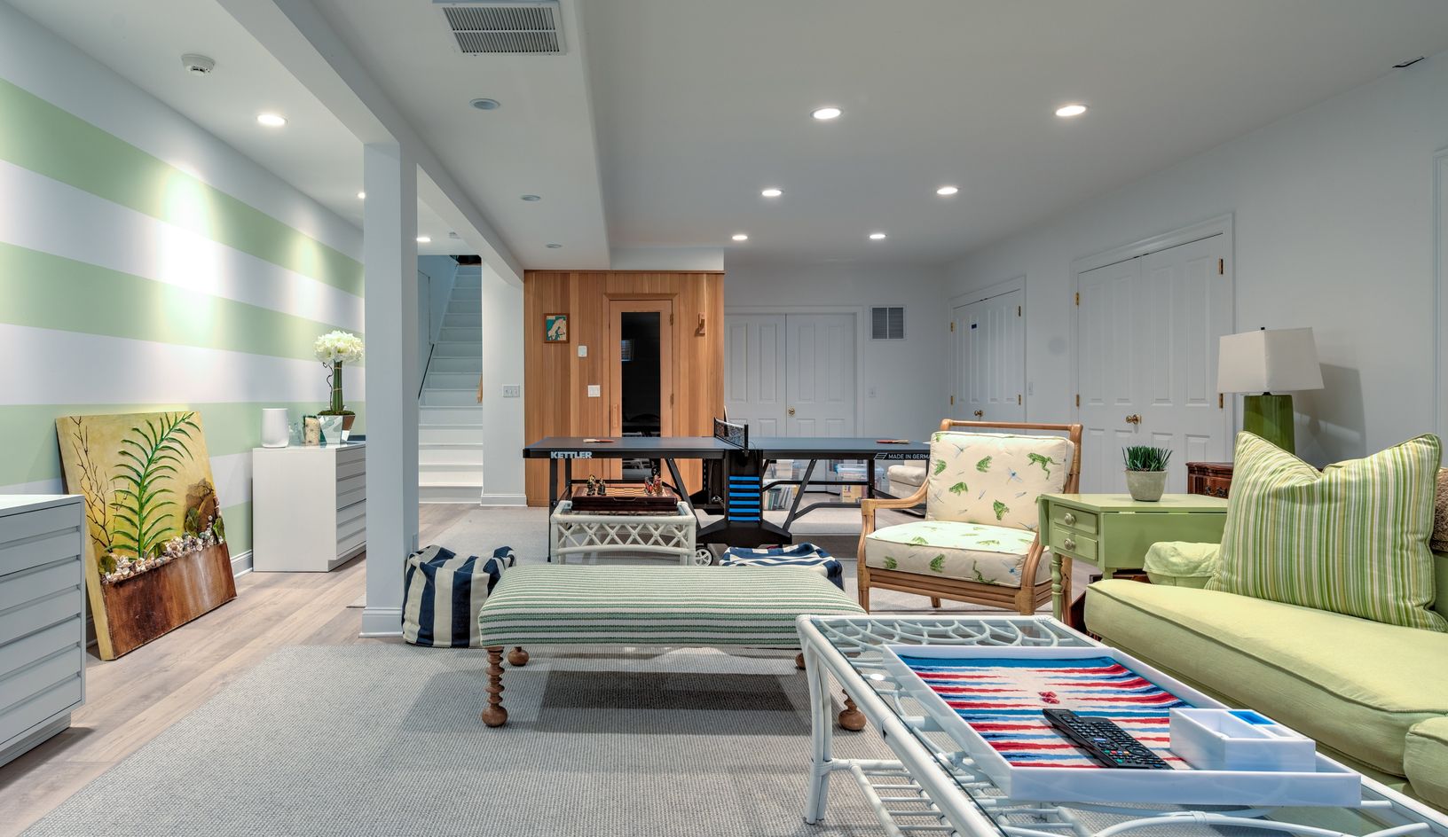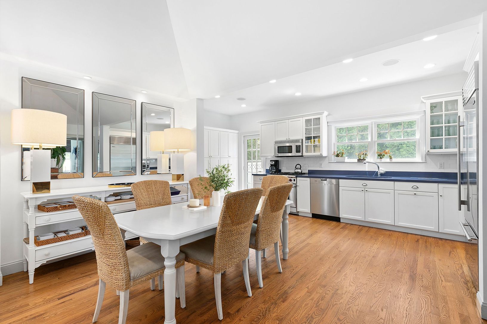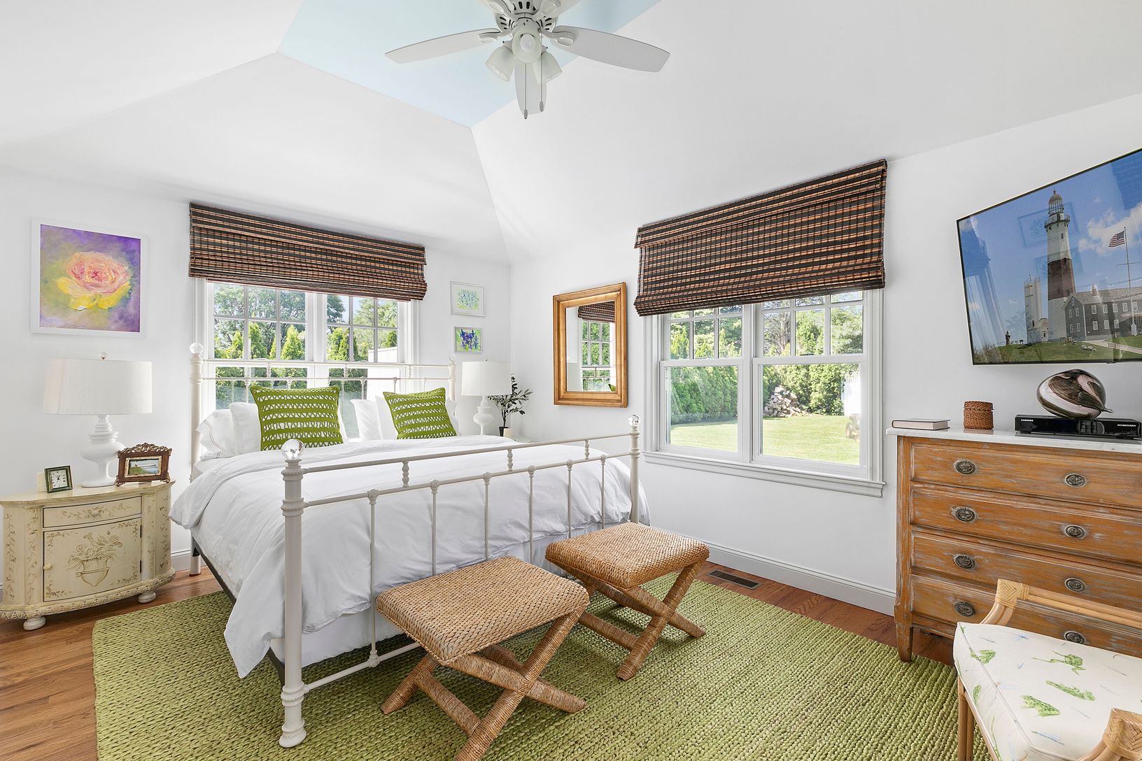 Beautifully decorated and well maintained South of the Highway Traditional with fabulous heated salt water gunite pool and patio. Light & bright open floor plan perfect for your care-free Summer. Living Room with fireplace, Family Room with fireplace, first floor Master Suite & junior Master Suite, plus additional 2-3 bedrooms, total of five baths. New Sauna, Central air and built in stereo system. Private yard, Beautiful Home! Close