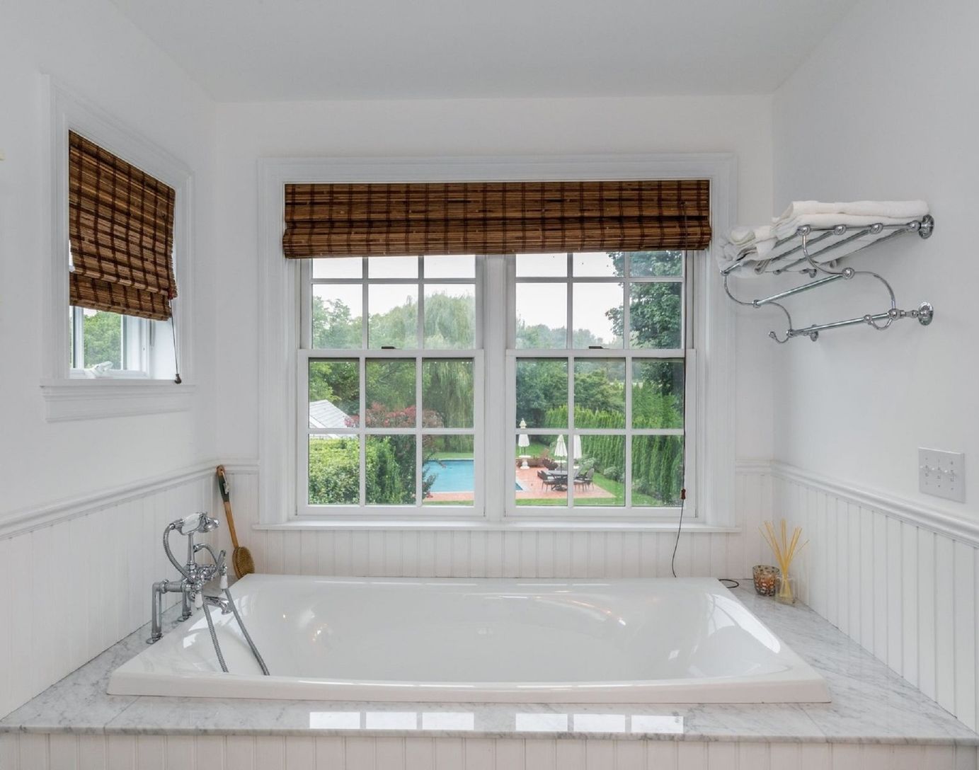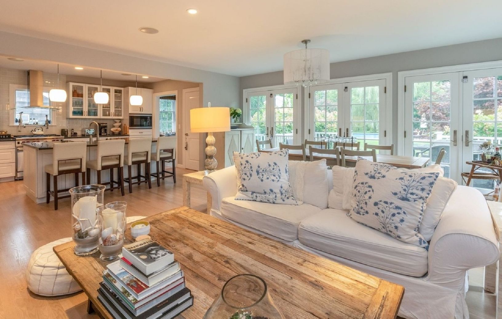 This Southampton Village Traditional has four bedrooms & three baths, gourmet kitchen with French doors that lead to deck overlooking the lawn and heated gunite pool. Open floor plan first level has bedroom and the master suite and two guest bedrooms are on the second floor. Fireplace and air conditioning. Close to ocean beaches, shops and restaurants.