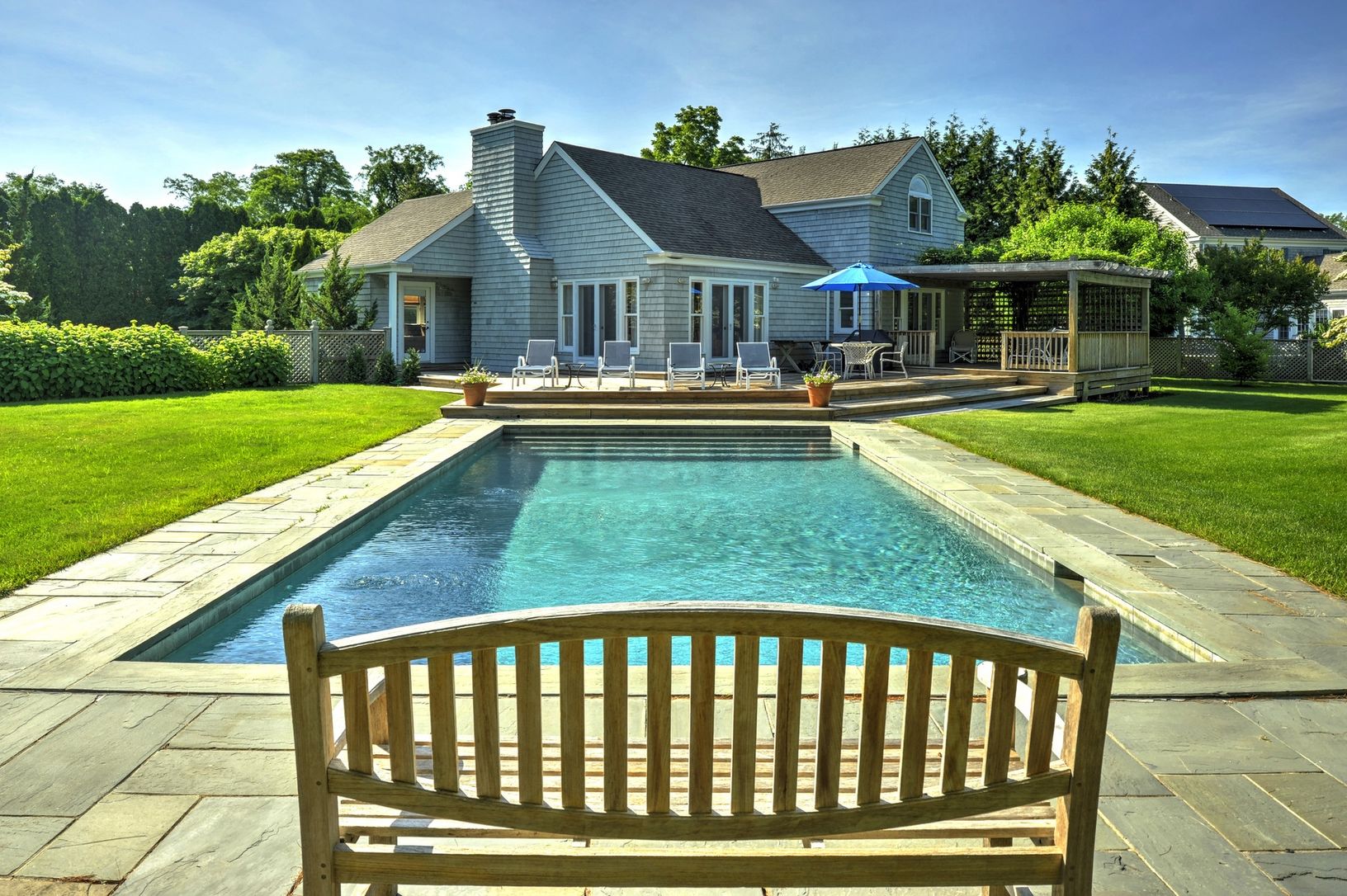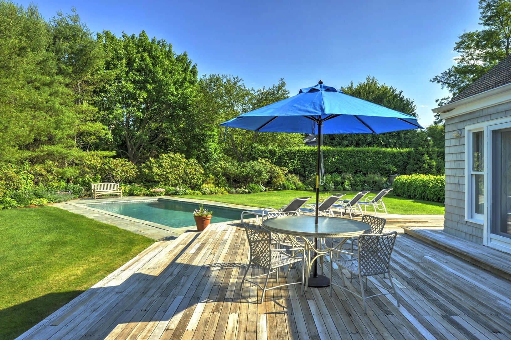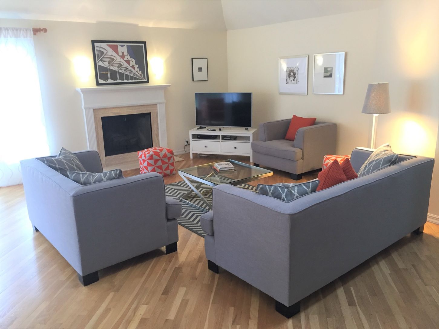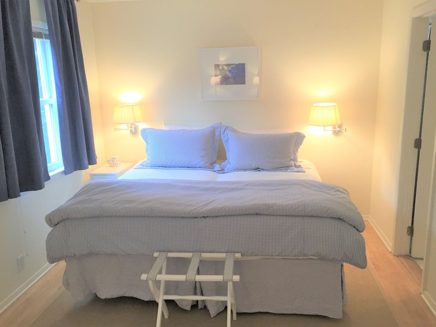 Light filled modern house. The large open space with fireplace is reminiscent of loft living with living and dining room in an open floor plan. Granite and stainless kitchen has an island with stools and a computer desk. Two bedrooms and one bath on the main floor with the master suite above. There is a covered lanai over the deck in view of the lush property. Available July @ $25,000