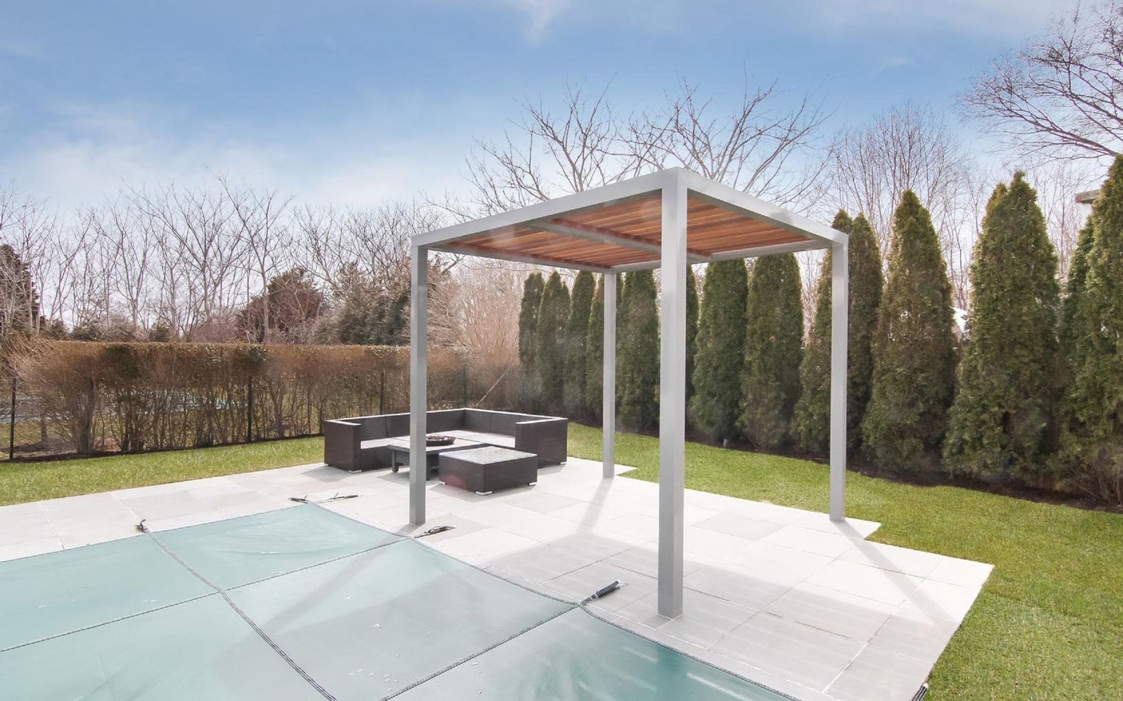 New construction in Southampton Village with modern and cutting edge interior. The kitchen is equipped with custom gourmet stainless steel appliances and a giant center island. The living room boasts amazing natural lighting with vaulted ceiling, fireplace and glass walls that overlook and beautifully landscaped pool area. An outdoor grill is built into the blue stoned patio. The yard has a gas fed fire pit and surrounding ground lighting cont