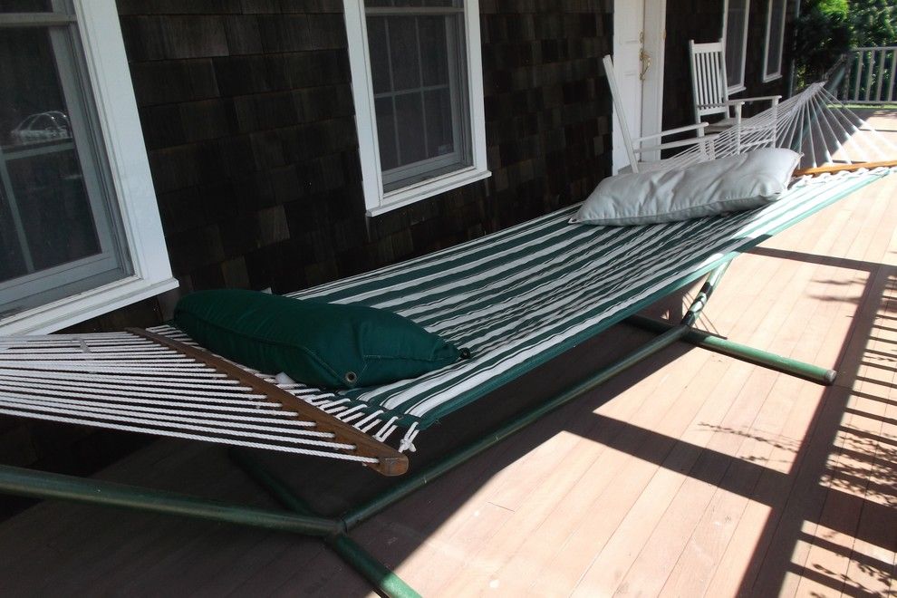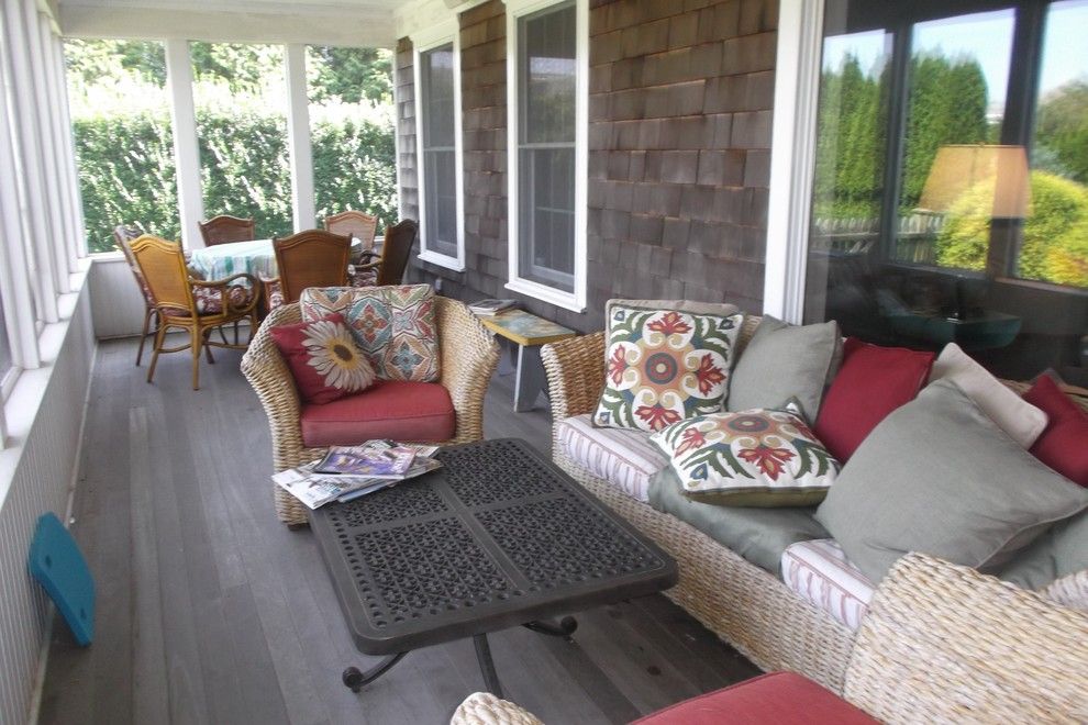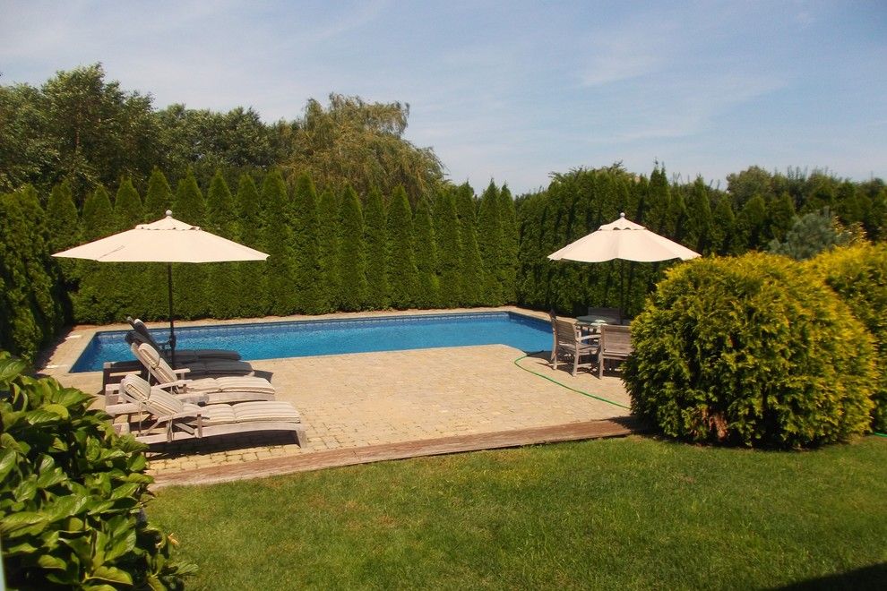 Contemporary house with prime location - a short hop to jitney, train and Southampton Village. Large covered front porch with a hammock to rest on and screened in back porch for lazy days of summer and large enough for al fresco dining. High ceilings, farm views. and beautifully done heated salt water pool with plenty of room in backyard for all activities. Master and additional bedroom on main floor as well as master and additional bedroom o
