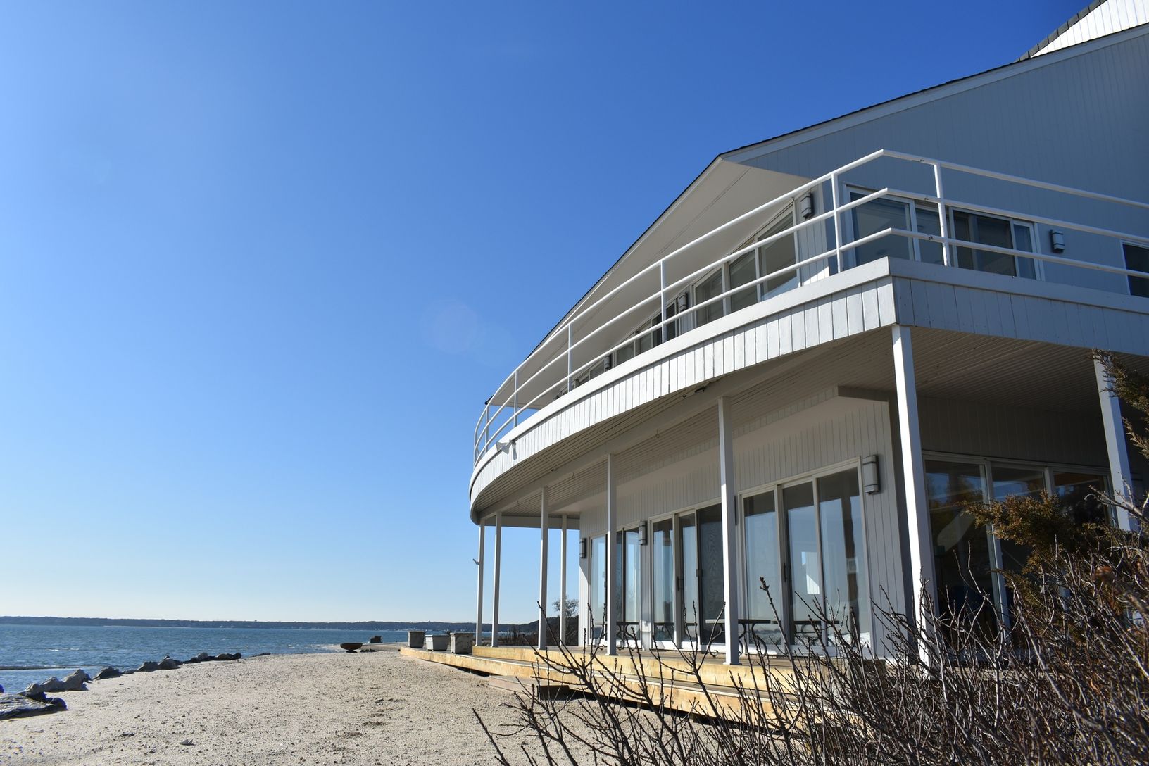 Delightful, peninsula-like Shinnecock Bayfront Contemporary offers 3-4 Bedrooms, 4 Baths, Open, Bright sun-filled Living Room, Dining and Kitchen with panoramic views out toward the Ocean . Beachfront access. Enjoy close proximity to the US OPEN 2018 and to Restaurants, Ocean beaches. Enchanting.