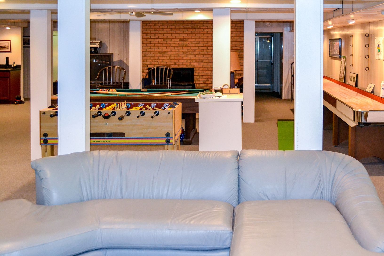 This airy modern home is just a short distance from Peconic Bay. Situated very privately on a quiet street, this beautifully appointed home offers four bedrooms, four baths, an inviting kitchen, finished basement with pool table and media room. Mahogany decking across the rear of house overlooking heated gunite pool and deco turf tennis court. Lots of open lawn for entertaining as well.