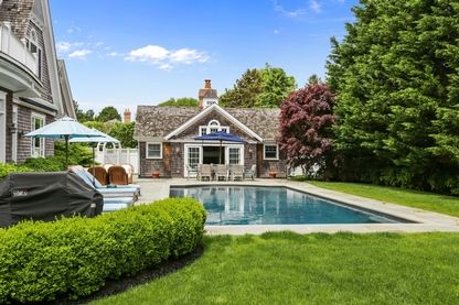 Located in the heart of Southampton Village, this impeccable 4,500 square feet gambrel features 6 bedrooms, 5.5 baths, large entertaining areas and a fully finished basement. The chefs kitchen which is outfitted with a Viking Range/oven, Sub-Zero fridge and ice maker opens directly out to a bluestone terrace and maturely landscaped yard. The heated gunite pool is flanked by a stunning fully outfitted pool house with shower, mini bar, hvac and