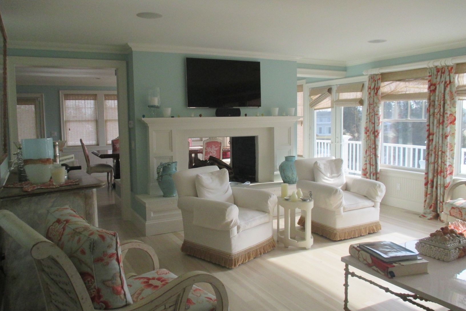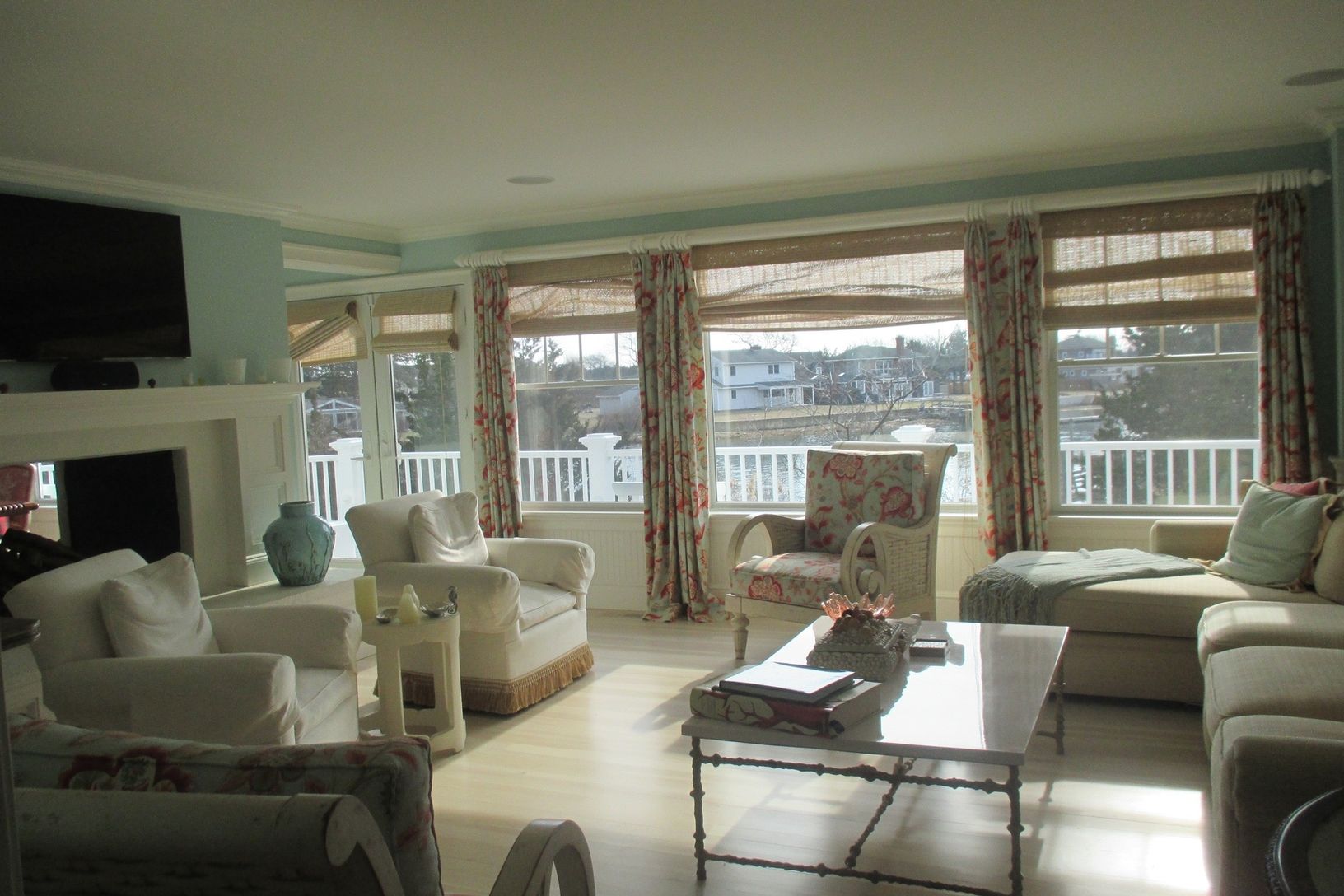 You can stay in this waterfront paradise with Jacuzzi while aiming your driver at Shinnecock Hills Golf Club! This beautiful Four Bedroom plus. First Level ensuite Junior Master with fireplace. Very private and tasteful. The second level with fabulous window views to the waterfront is the kitchen, dining for 14, and great room with double sided fireplace and televisions. All smart TV. The double-sided fireplace adds to the casual elegance and