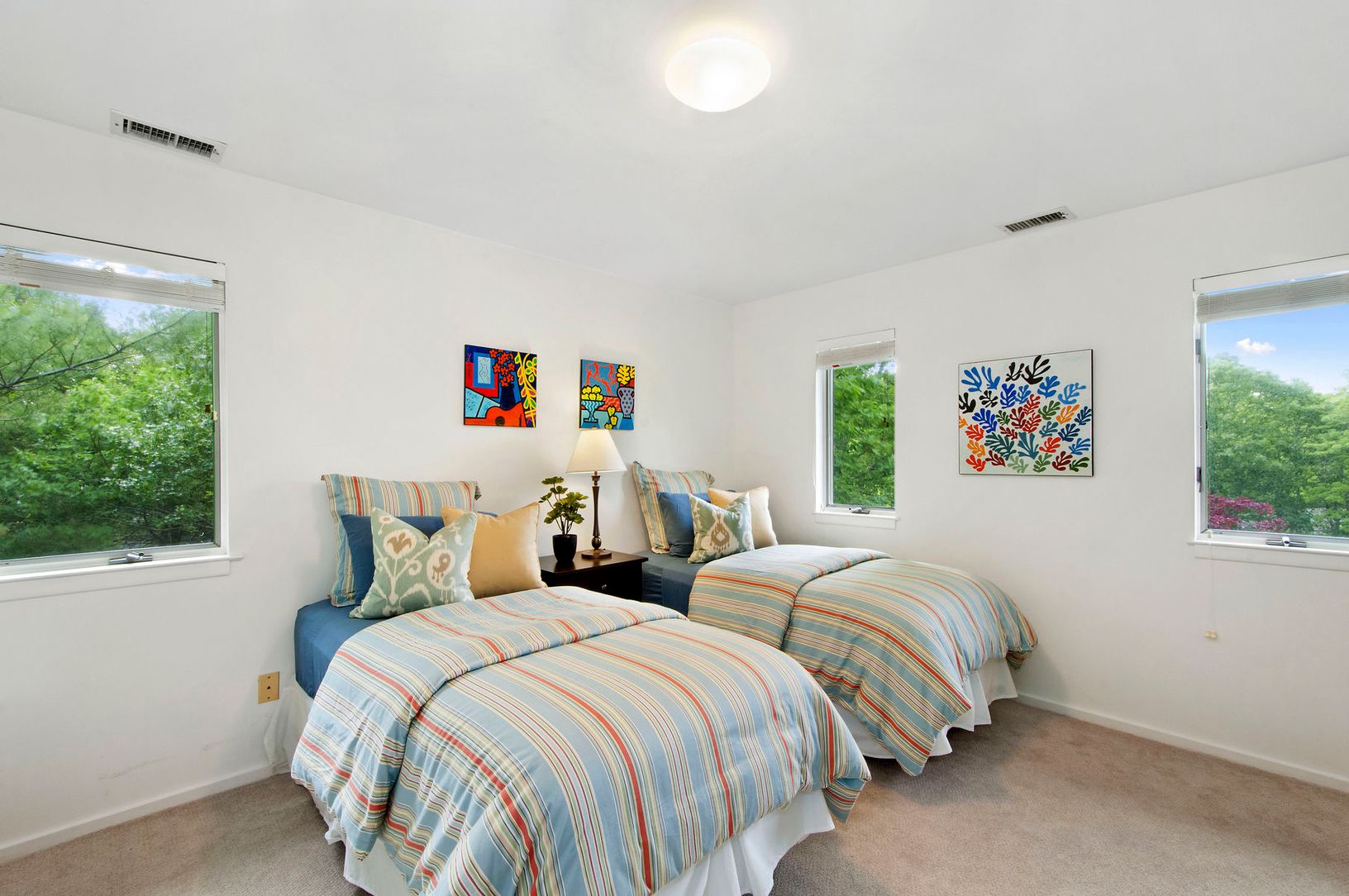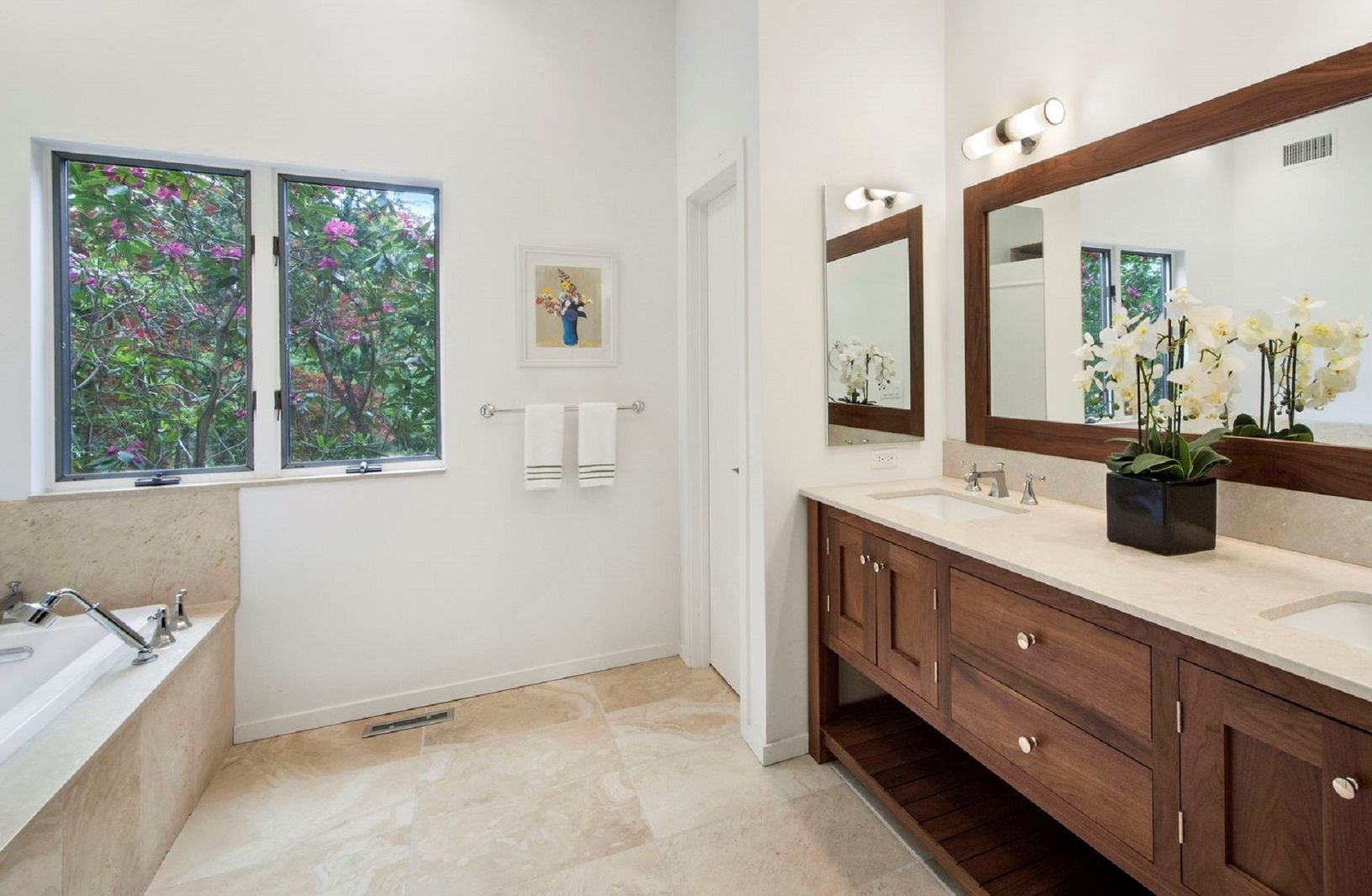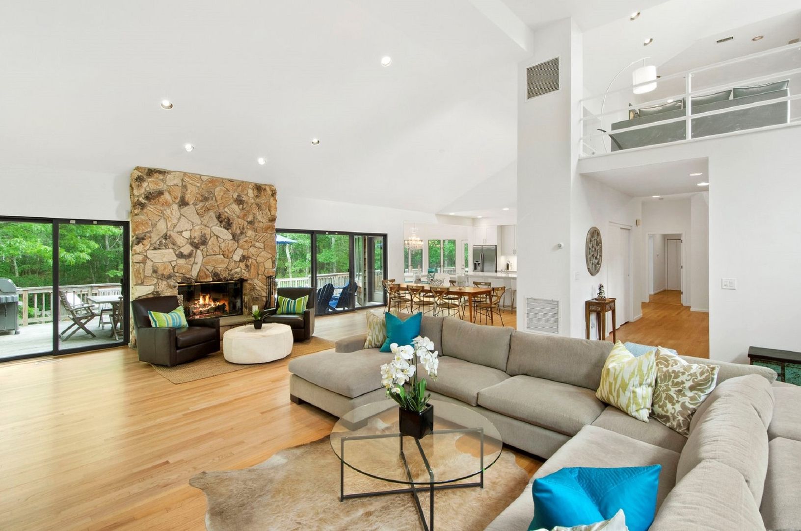 This bright and spacious California style contemporary on a quiet cul de sac, features 4 bedrooms, bonus room, 4.5 baths, and a two story cathedral ceiling living room with a big stone fireplace. The kitchen has granite countertops and top of the line appliances including Bosch stove and a bright breakfast area. Other amenities include heated pool, outdoor shower and basketball court. Private and quiet - a wonderful place to spend the summer.<