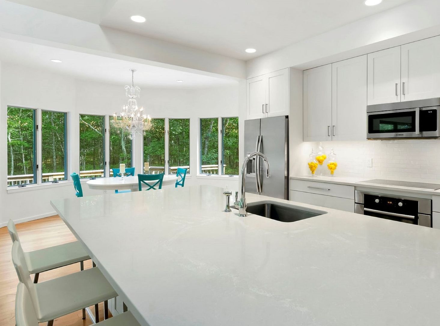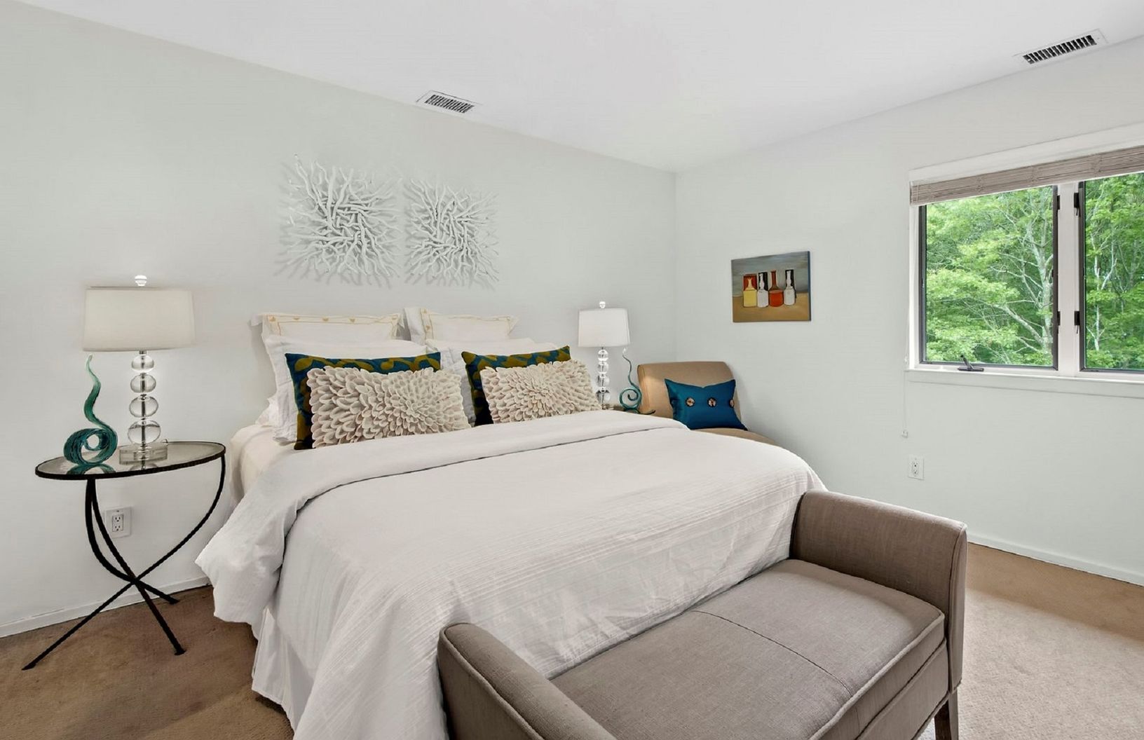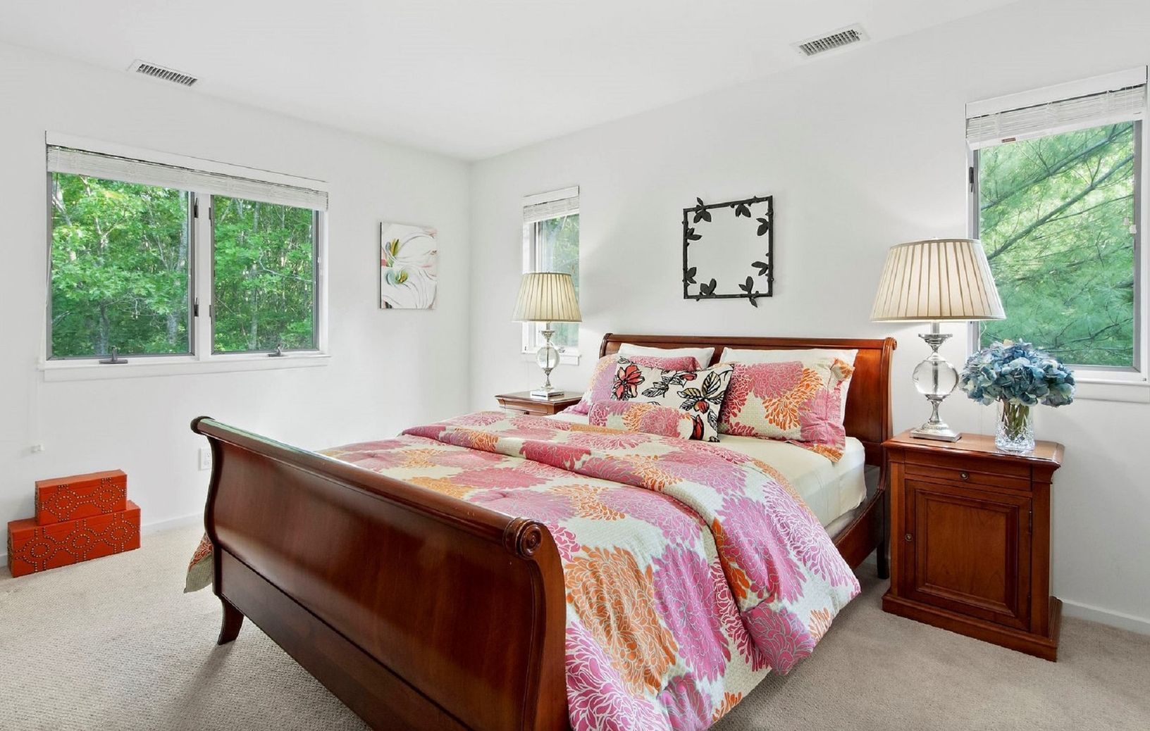 This bright and spacious California style contemporary on a quiet cul de sac, features 4 bedrooms, bonus room, 4.5 baths, and a two story cathedral ceiling living room with a big stone fireplace. The kitchen has granite countertops and top of the line appliances including Bosch stove and a bright breakfast area. Other amenities include heated pool, outdoor shower and basketball court. Private and quiet - a wonderful place to spend the summer.<