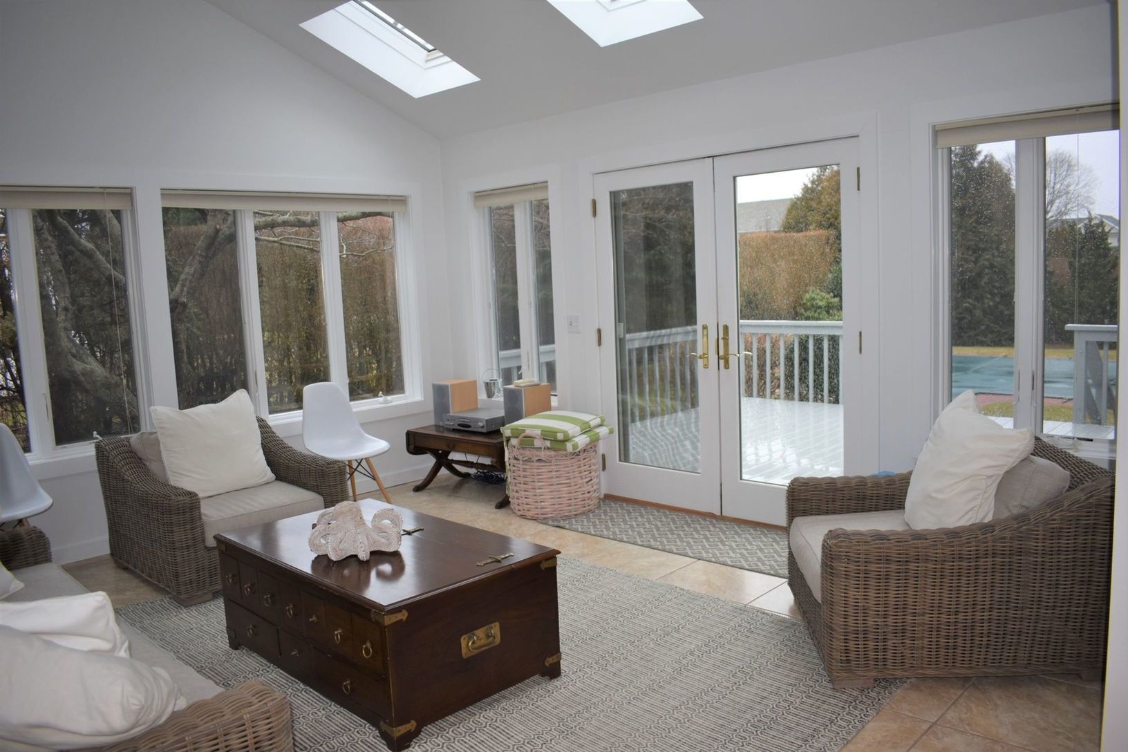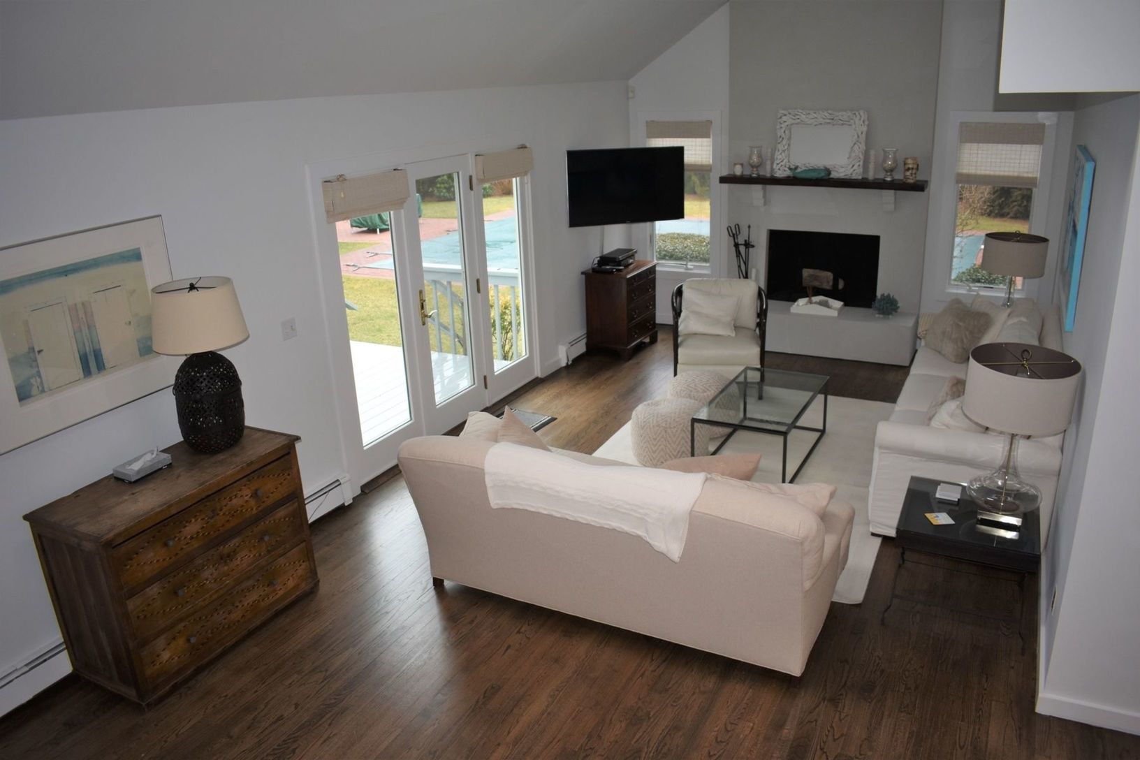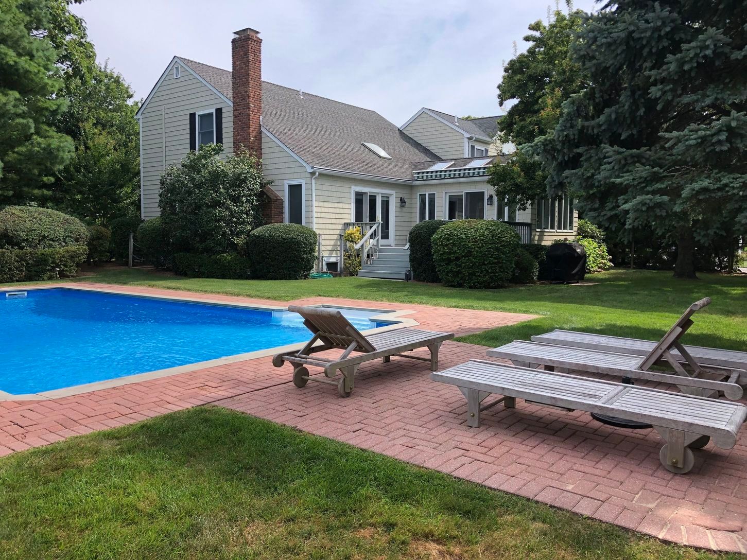 Just the right combination of comfort and casual style with a crisp" beachy" feel! Newly painted & furnished cathedral great room with fireplace and dining area, bright skylit sunroom opens to deck with awning, 5 bedrooms, 5 full baths, including 1st floor master suite, eat-in kitchen, finished basement, central air, attached garage & heated inground pool. Offered June 1st- July 31st '21 @ $65,000. Call for appointment.