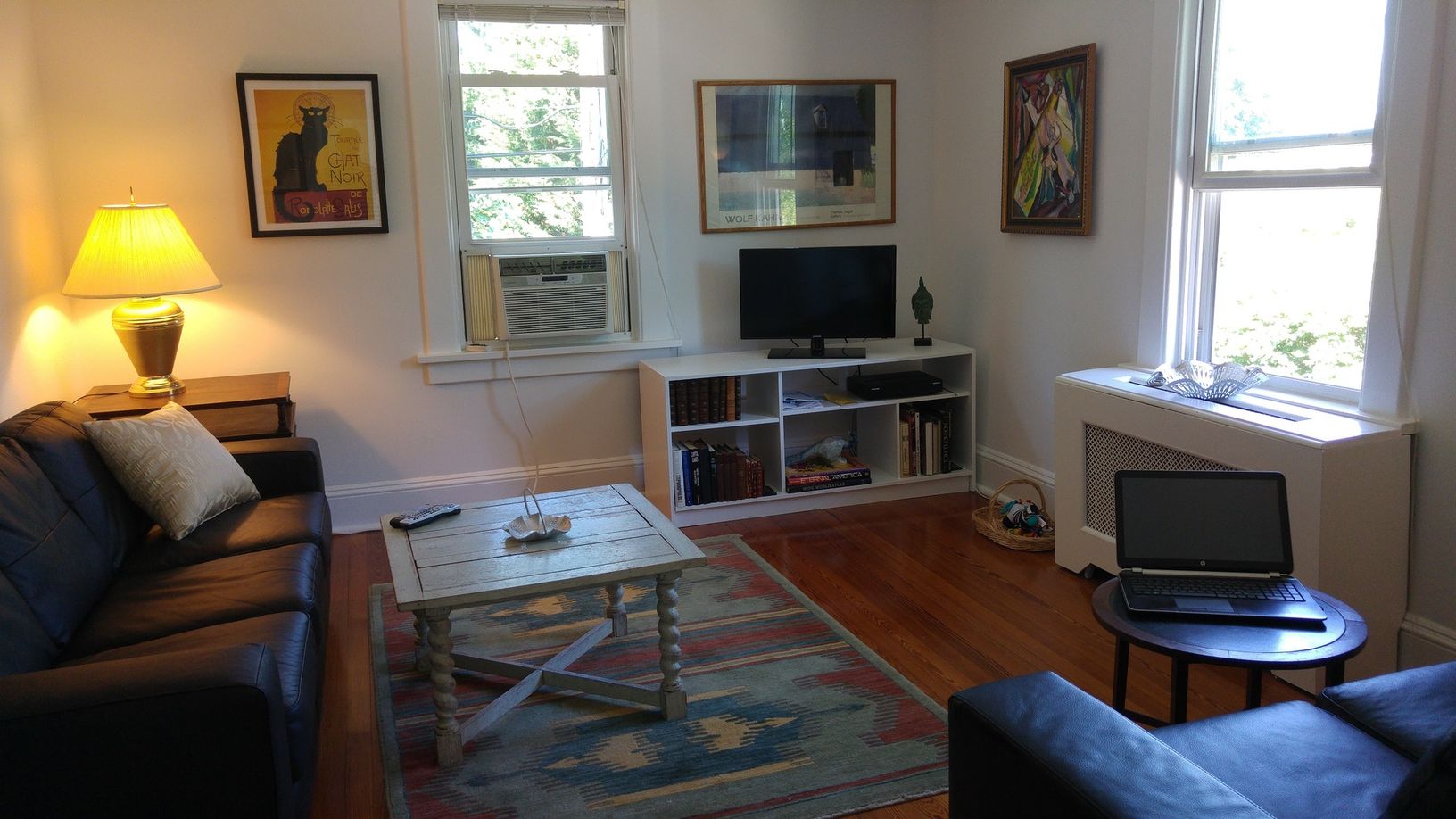 This bright and sunny 2-bedroom, 1-bath apartment with an open feel is extremely spacious and ideally located in the heart of Southampton Village. Includes washer-dryer and one additional small room, which can be used for a home office or sewing room, as well as an additional separate pantry off the kitchen. The apartment has a separate entrance. Located in a quiet residential street within a few minutes' to supermarket, train, and Southampton