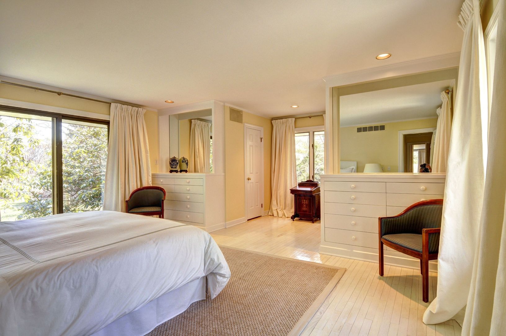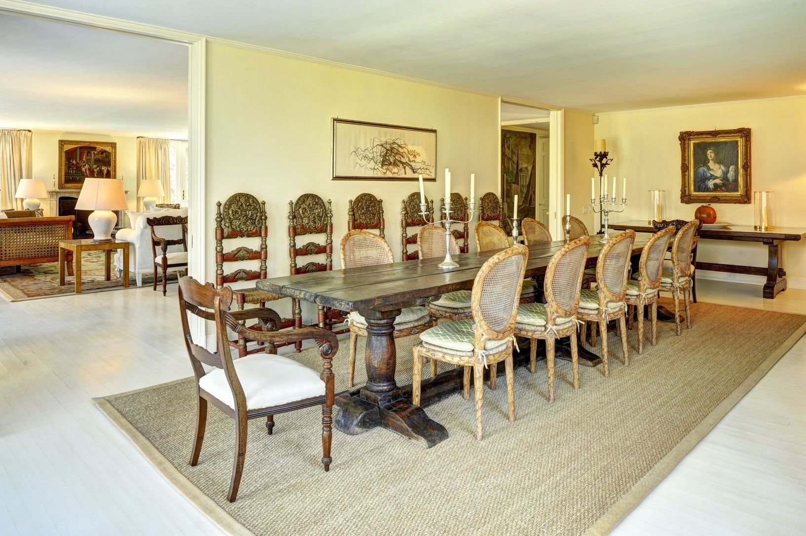 This large and sophisticated traditional, on a two-acre-plus flag lot in the village estate section, boasts four bedrooms and four and a half baths with the master bedroom on the main level. Absolutely pristine home; beautiful furnishings, central air, two fireplaces for chilly summer evenings. One thousand square foot living room perfect for entertaining; separate large library with flatscreen, formal dining, breakfast area in the kitchen. Fi