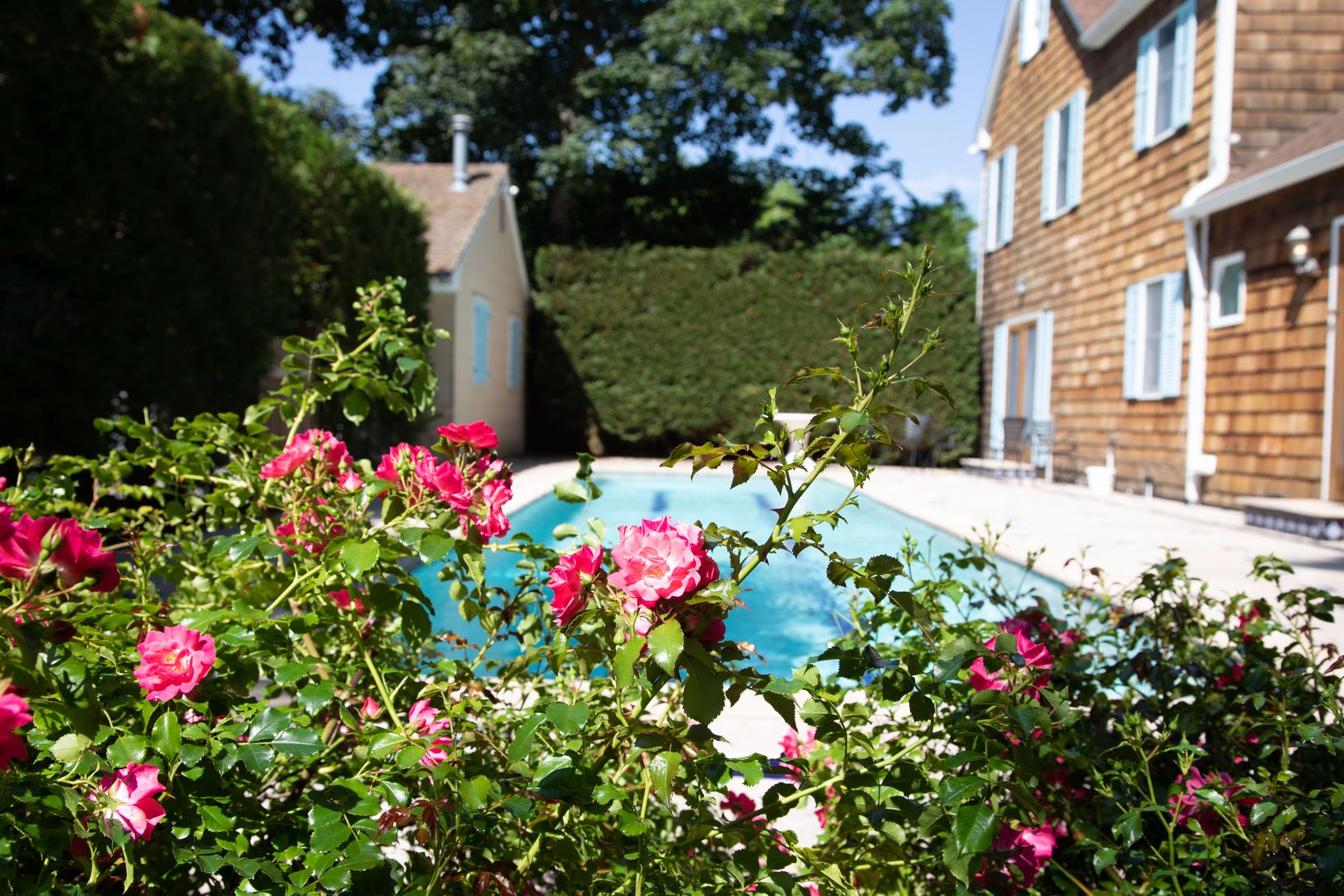 Four bedroom, three bathroom Southampton Village rental with pool. Centrally located one block from Main Street with all its restaurants and shops and a short distance to the beautiful Village beaches. Enjoy the off street parking and privately situated pool right in the middle of the village.The home features both and upstairs and downstairs primary bedrooms, vaulted ceiling living room, gourmet kitchen equipped with Nespresso machine and a