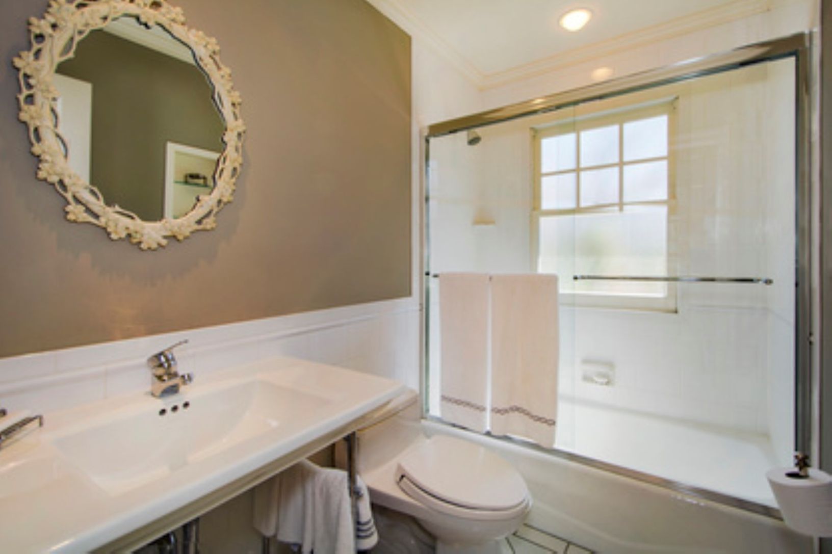 Lovely 2- story post-Modern home on an acre with six bedrooms, four baths, and heated pool.