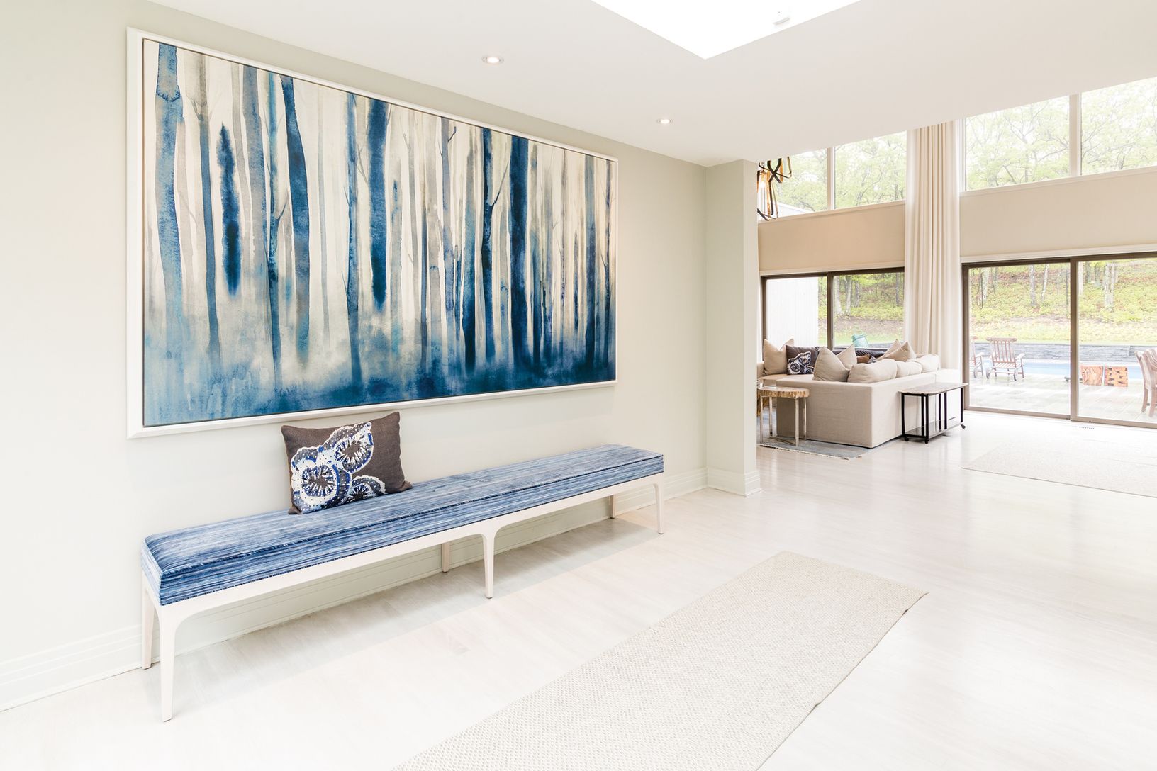 This stylishly renovated modern residence delivers the quintessential Hamptons experience. Double-height ceilings and walls of glass flood the interiors with natural light year-round, setting a bright and airy tone throughout. With four privately situated bedrooms, four baths, and multiple lounging areas, the home offers a seamless blend of comfort, elegance, and easy summer living. The fully finished basement is ideal for recreation, relaxati