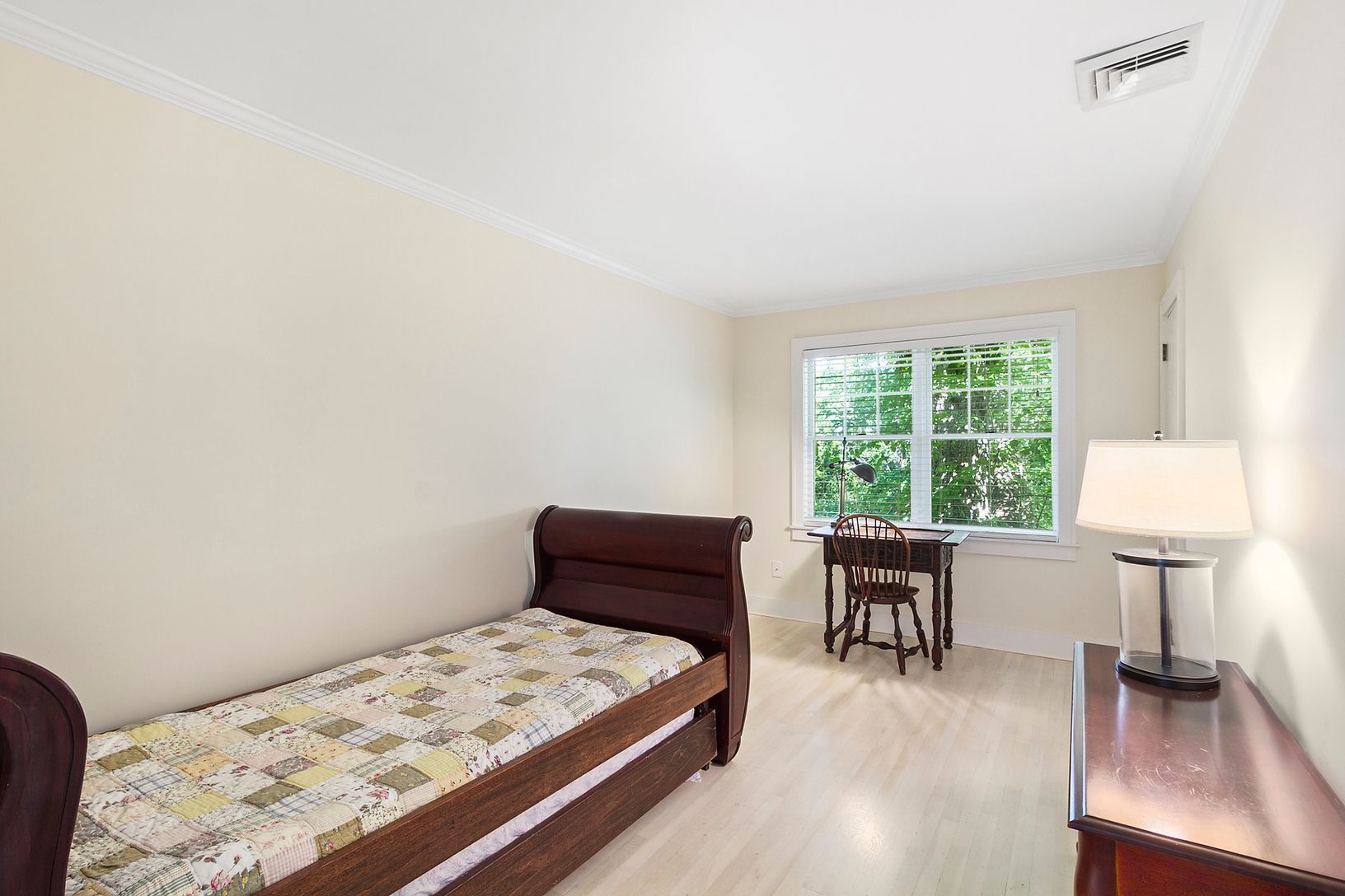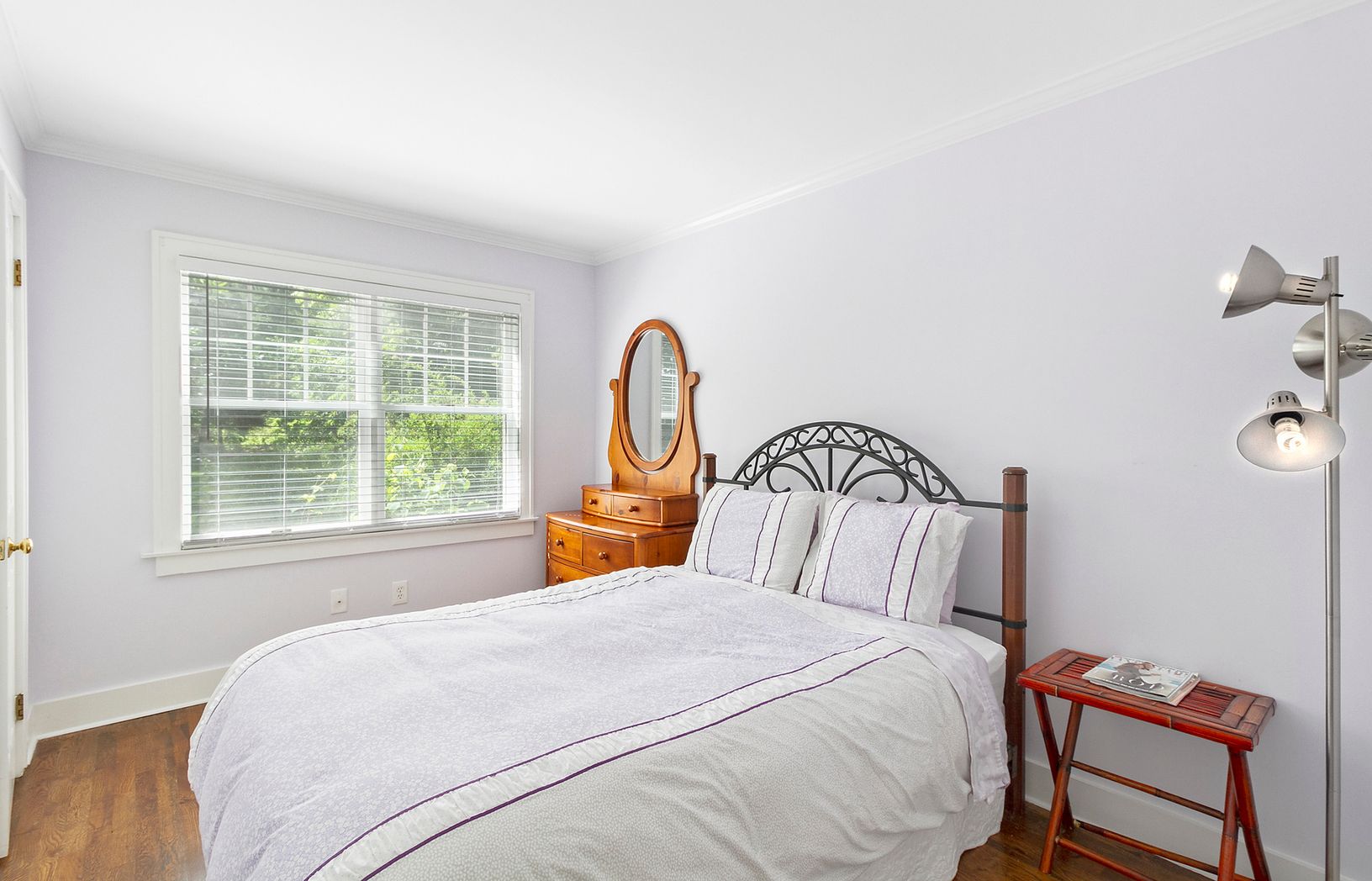 This comfortable two-story farmhouse is privately situated on .8-acre in the Village of Southampton. Features of this 4 bedroom, 4.5 bathroom home include freshly painted, recently upgraded eat-in kitchen, 2 living/sitting rooms with fireplaces & large Flat Screen Televisions , sunporch, formal dining room, outdoor deck and terrace. The Second floor comprises: 3 bedrooms, 2 and one-half bathrooms. Master bedroom with balcony has a
