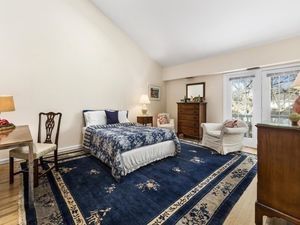 This Southampton Village condominium is located on eight landscaped acres along the southern end of the compound and at the end of the Cul de Sac. Particulars include a 2 story sunny entry hall, generous living room with a wood burning fireplace, enclosed sunroom, eat in kitchen, and formal dining area which opens to a blue slate patio for outdoor dining with views of the vast lawn. Hardwood flooring on both levels, large master suite has its