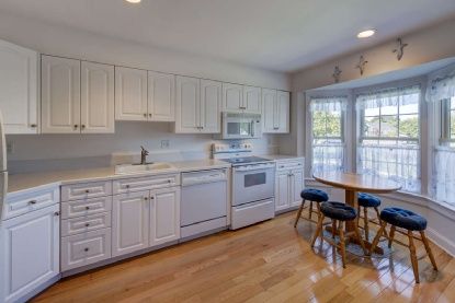 Substantially renovated home at Founder's Village in Southold - moments to shopping, restaurants, public transportation, wineries and beaches... Founder's Village also offers a luxurious pool, community room and outdoor shower on its 10++ acre 'in town' compound. Center unit offers east facing front for morning light in the kitchen, plus sunsets over 'preserve' off of west facing living - that features wood a wood burning fireplace... Custom