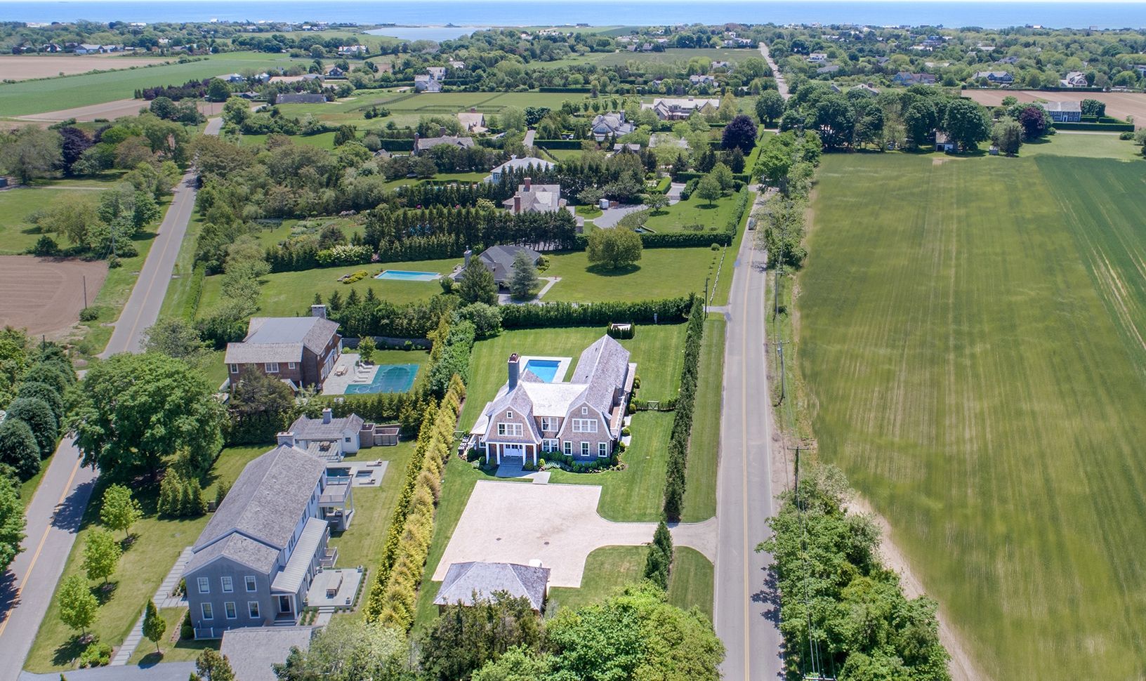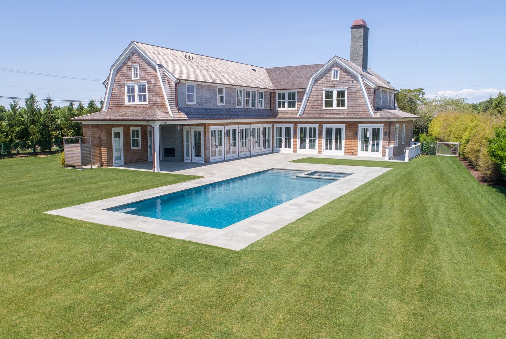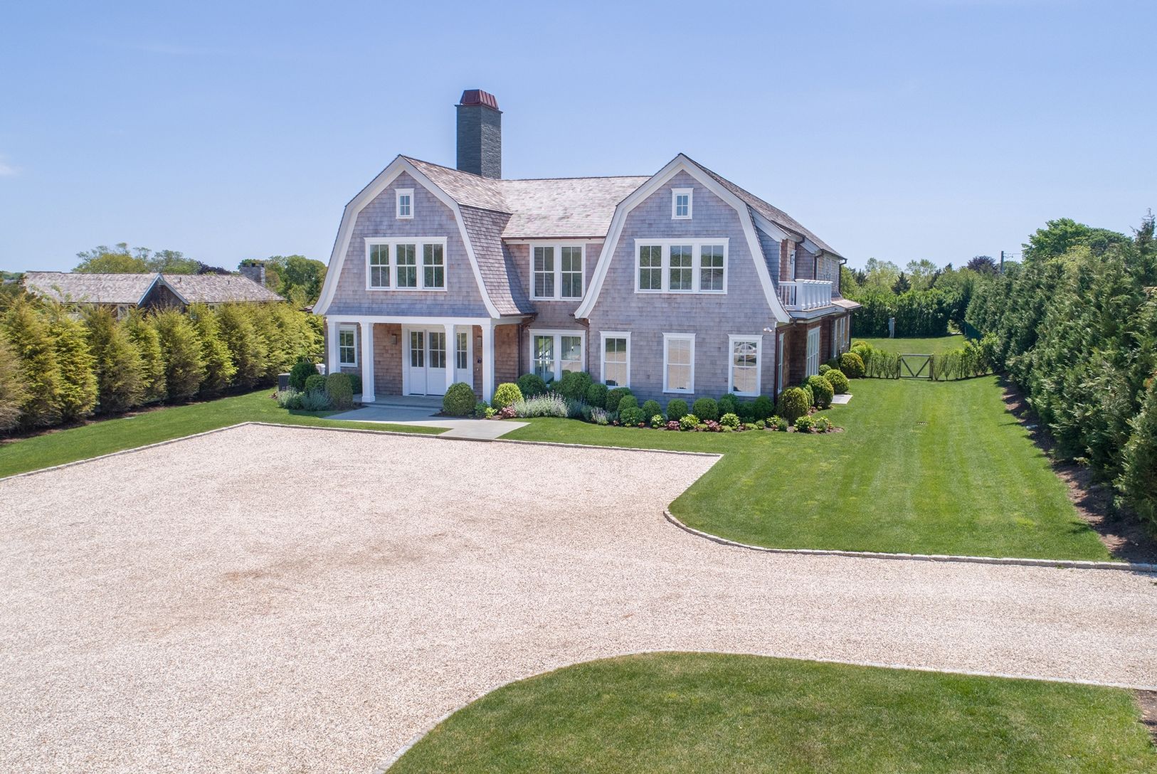 Stylish Gambrel sited on .75 acres in Wainscott South. Built by renowned Hamptons developer, Farrell Building Company. The 7,200+/- sf home offering seven bedrooms 6 full and three half baths. the elegant floor plan opens to the light filled foyer leading to grand living room with fireplace, dining room, spacious country kitchen and adjacent family room transitions to covered porch with outdoor fireplace and wet bar, 1st floor master suit, la