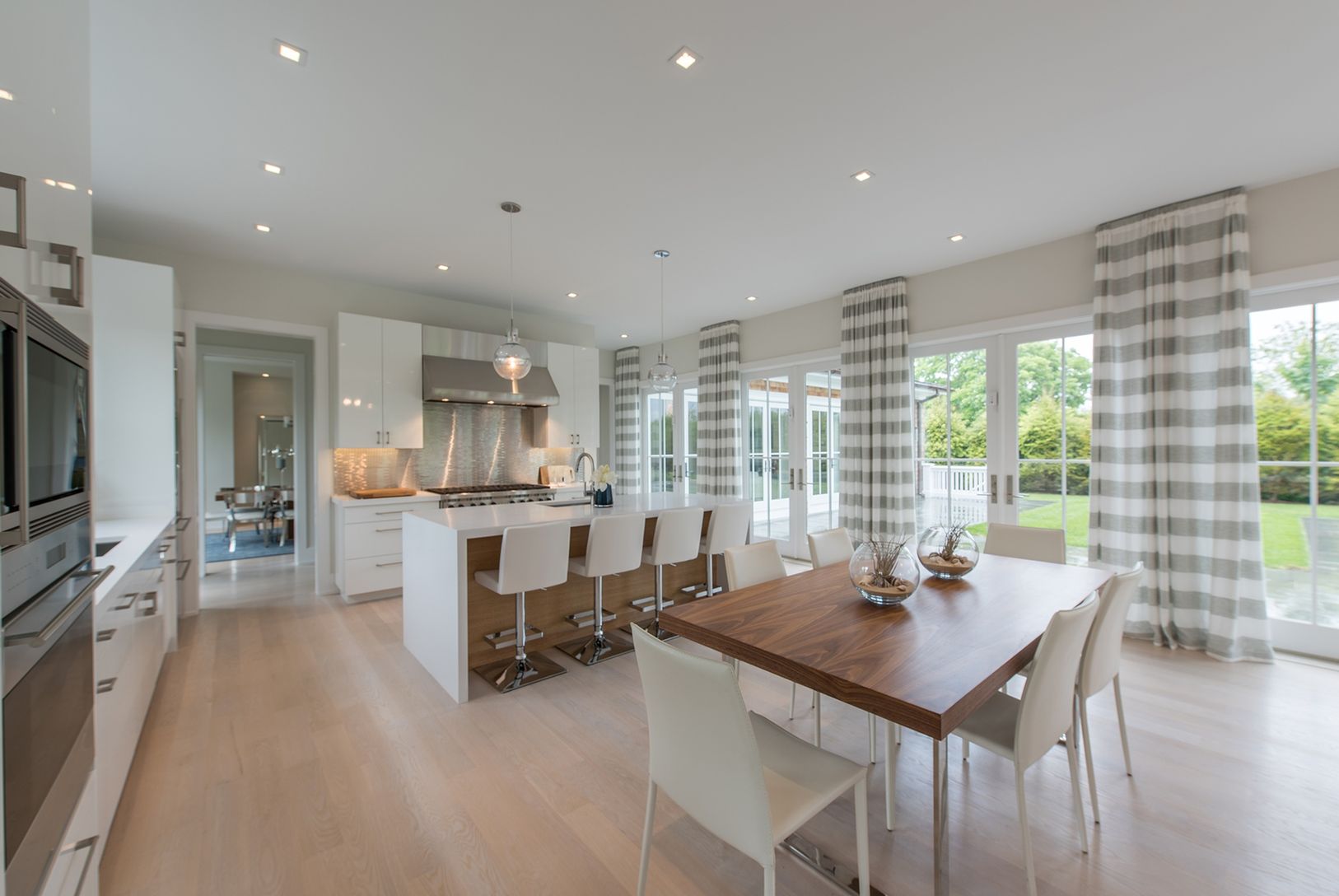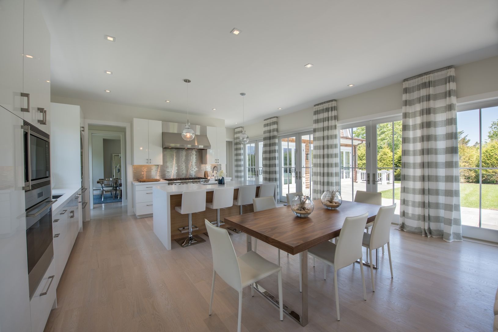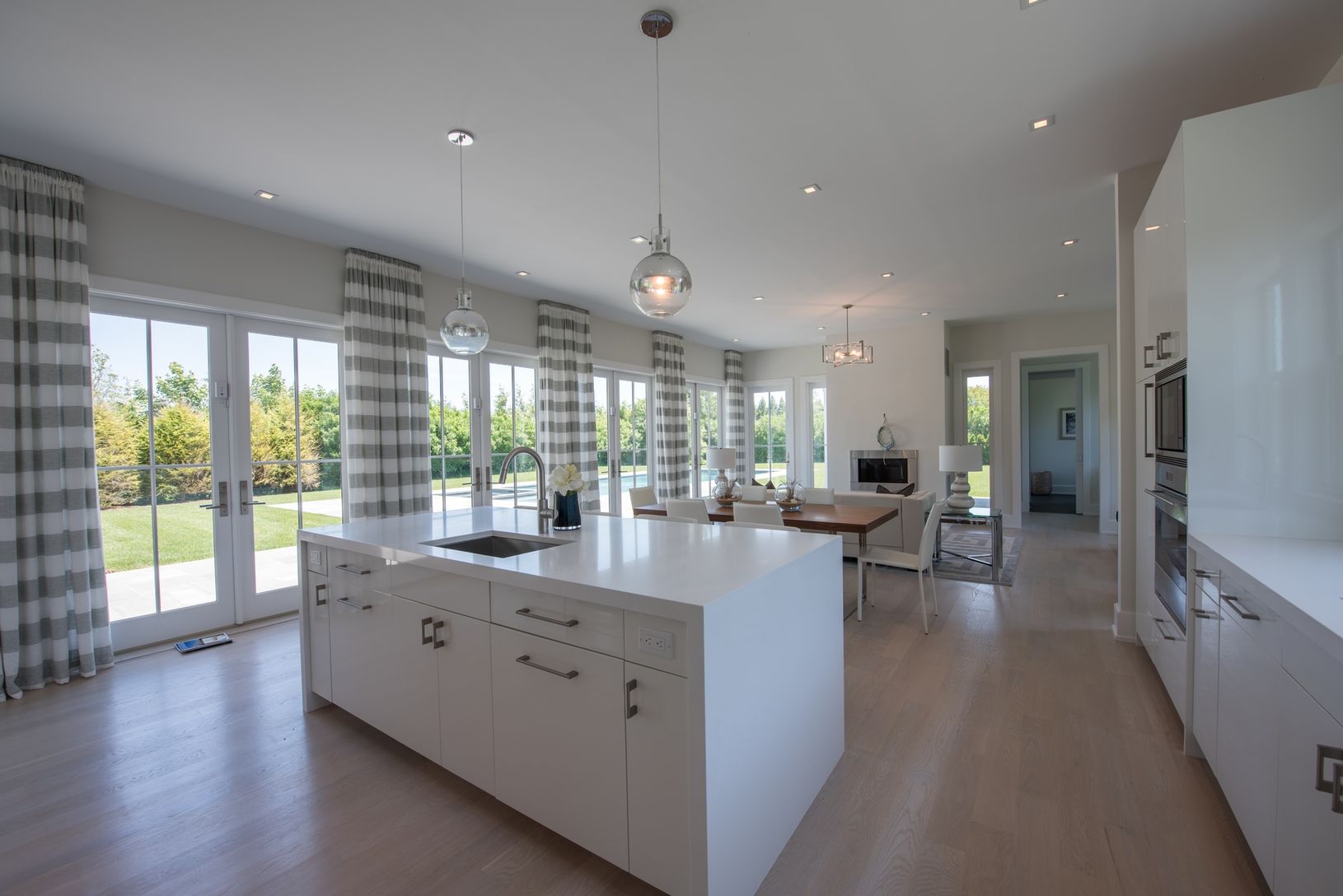 Stylish Gambrel sited on .75 acres in Wainscott South. Built by renowned Hamptons developer, Farrell Building Company. The 7,200+/- sf home offering seven bedrooms 6 full and three half baths. the elegant floor plan opens to the light filled foyer leading to grand living room with fireplace, dining room, spacious country kitchen and adjacent family room transitions to covered porch with outdoor fireplace and wet bar, 1st floor master suit, la
