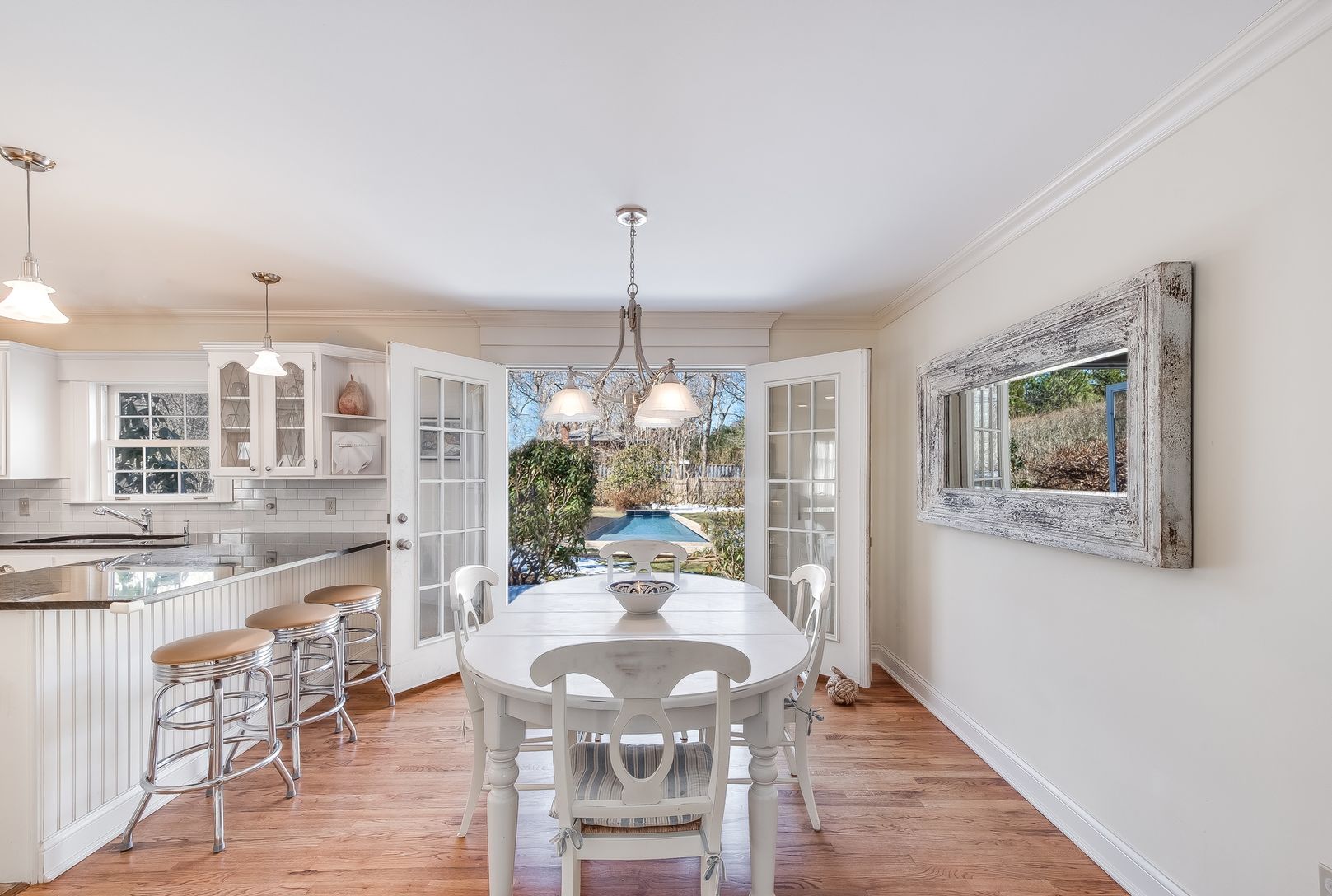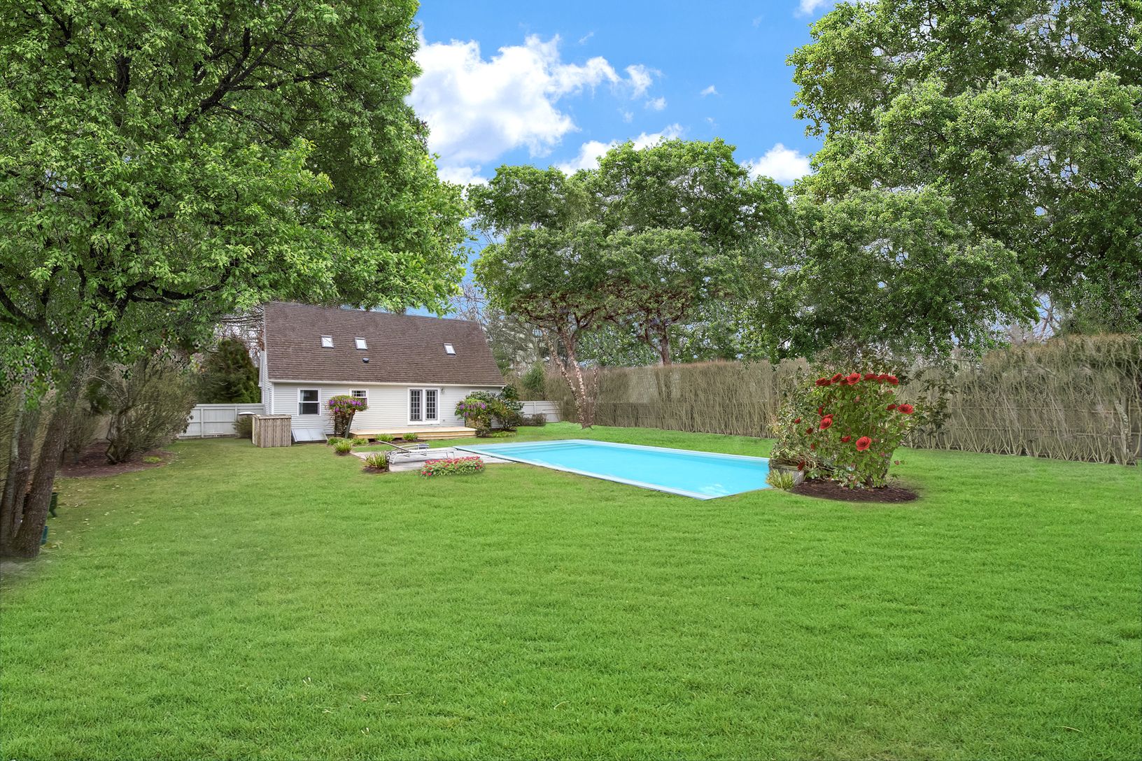 SOLD. This classic Wainscott Cape style home is located just 1.5 miles from the ocean. The entry foyer opens into a bright living room that connects to the kitchen and dining areas. Two guest bedrooms and full bathroom complete the first floor. French doors lead out to a spacious backyard with heated swimming pool. The upper level contains a large ensuite master bedroom with sitting area and walk-in closet in addition to the fourth bedroom