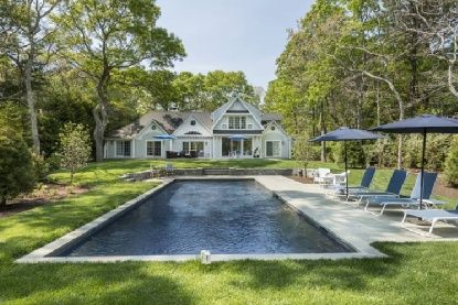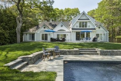 Rental Registration #: 16-1409 This handsome post modern features an attractively furnished living room with fireplace; dining area, kitchen, four bedrooms, four baths and a powder room. The house is immaculate, and amenities include central air-conditioning, expansive brick patio, pergola, and an 18'x36' heated gunite swimming pool. Conveniently located close to town and beaches..