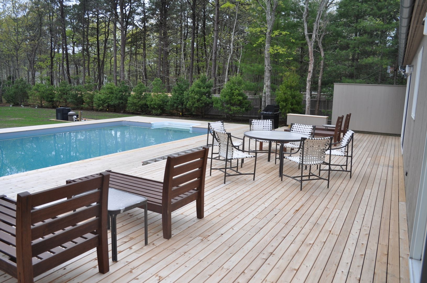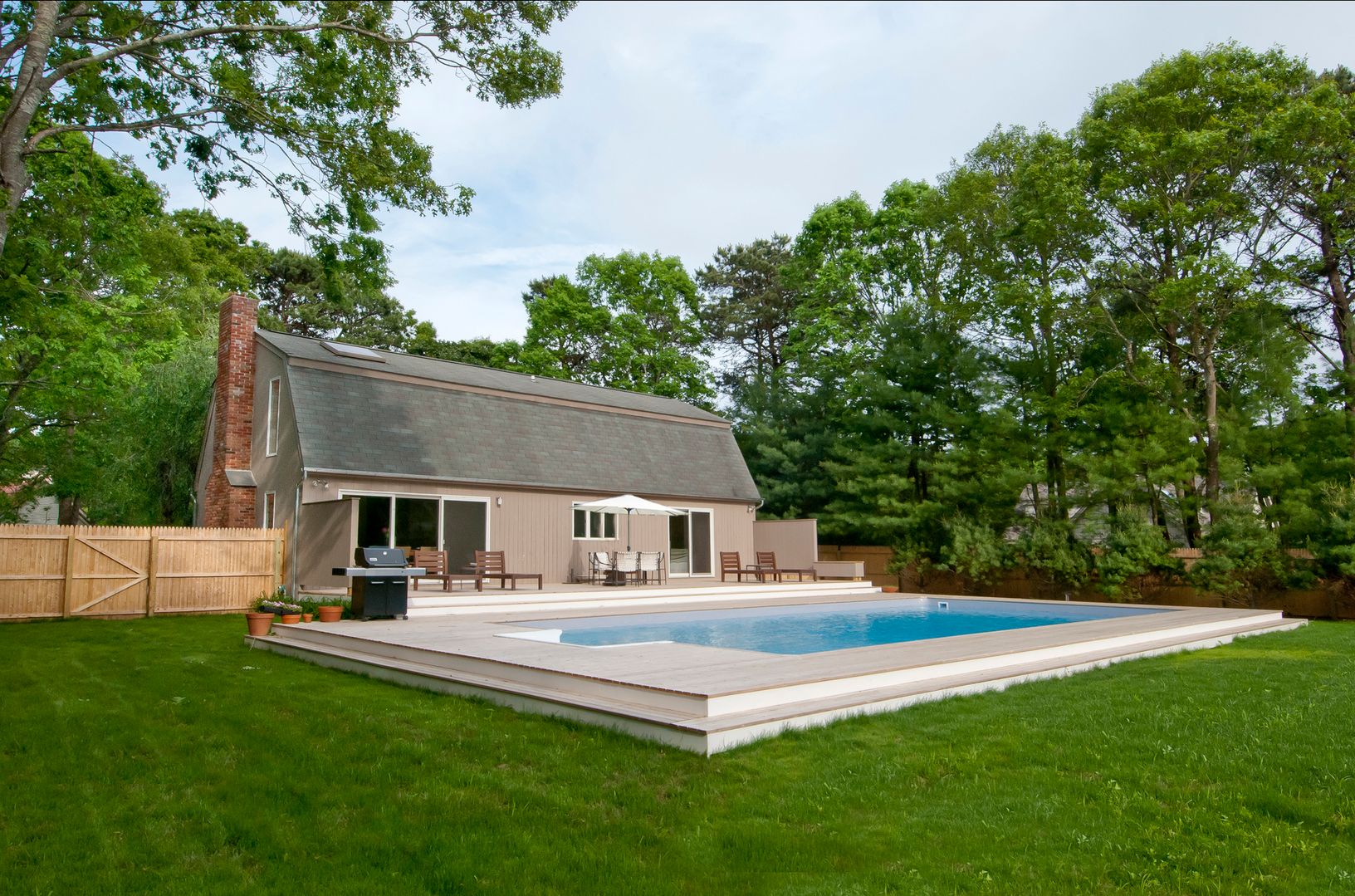 Sun-drenched barn-style contemporary, newly renovated and situated on 0.70+/- acre of landscaped property with a gated pool. The impeccable house features an open floor plan, with a living room with fireplace, dining area, fine kitchen; three bedrooms, two baths, central air-conditioning, and a large outdoor deck for entertaining or relaxation. Conveniently located a short distance from Wainscott beaches.