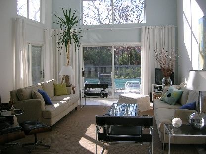Rental Registration #: 16-584 Tucked away on a private drive, this stylish contemporary offer lots of indoor and outdoor space. The living room has walls of glass, a fireplace and contemporary furnishings. There is a large kitchen and dining area perfect for summer dinner parties. Downstairs there are 2 bedrooms each with their own bath, and upstairs there is a deluxe master suite plus two additional guest bedrooms. Outside there is a sunny po