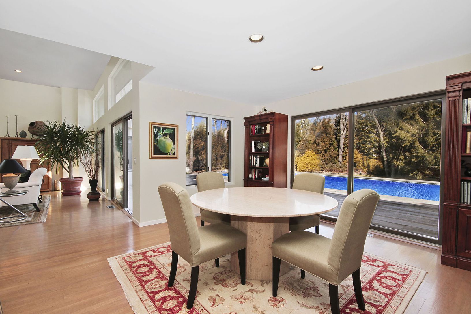 Very hip and stylish. South of the highway contemporary on 1 lush landscaped acre. Brand new chefs kitchen, four bedrooms , four and one half baths, master suite with steam and jacuzzi , dining room , huge great room , portico, garage , huge basement waiting to be finished , tons of outside decking perfect for entertaining or just hanging out.