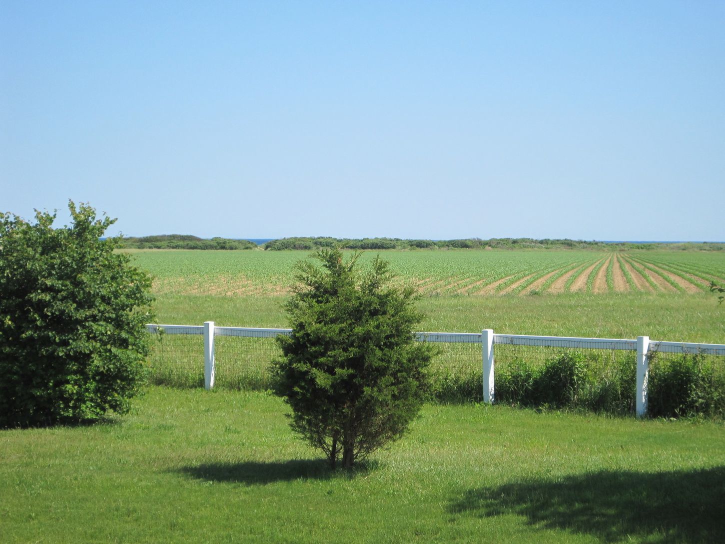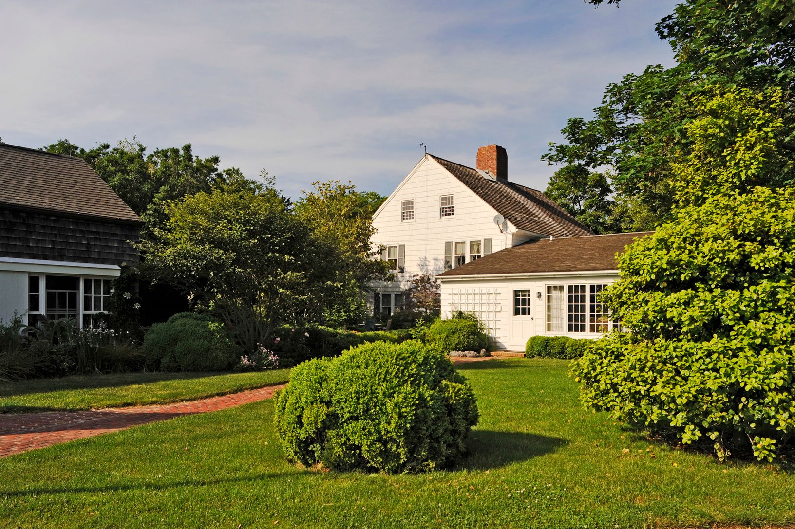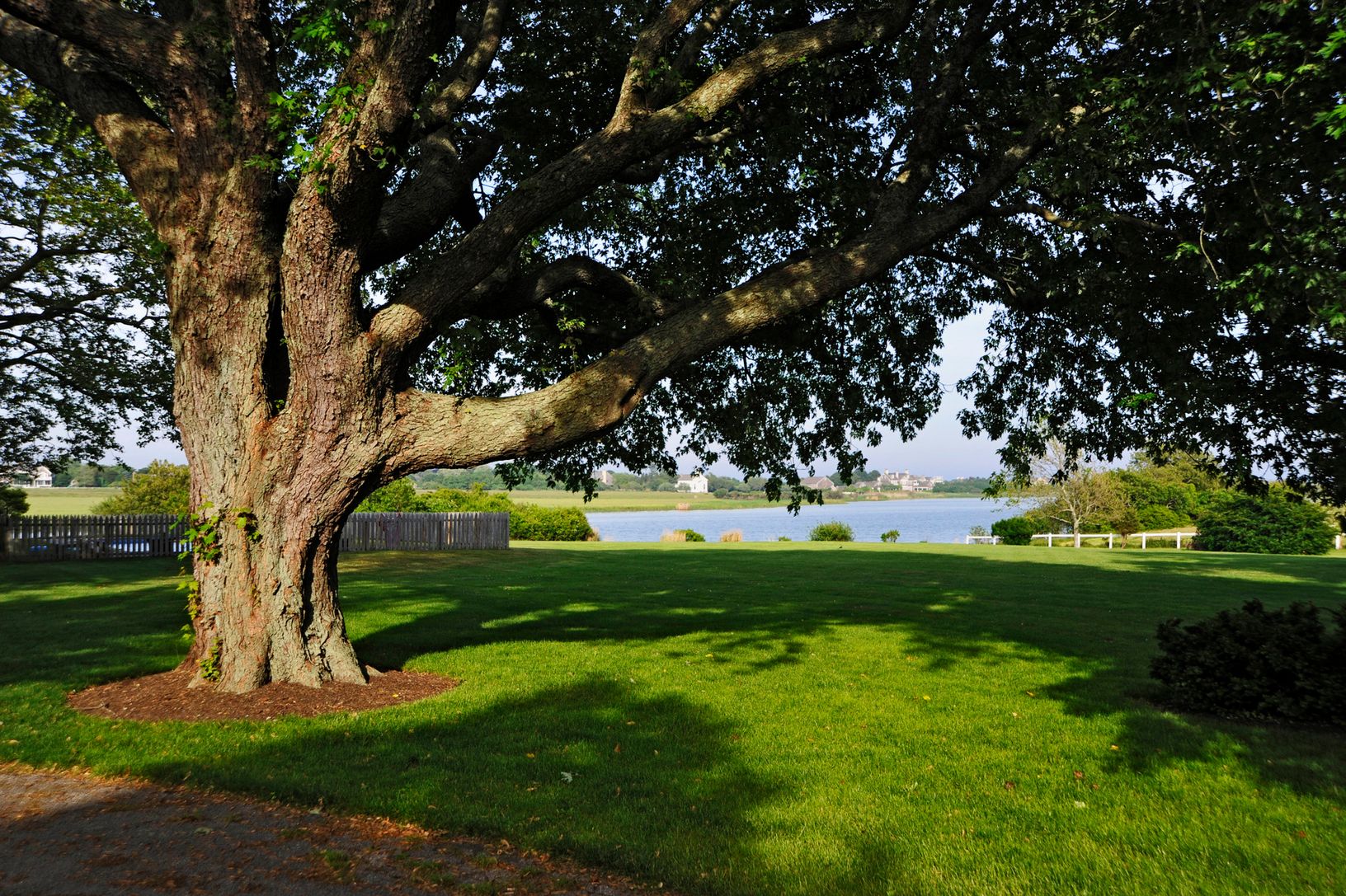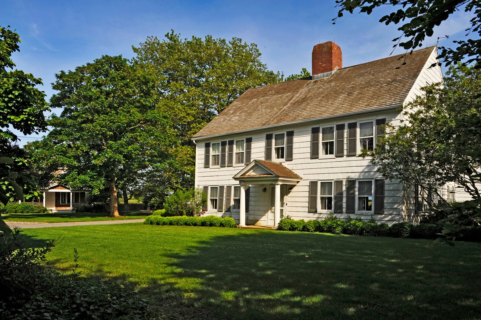 A long private drive opens up to reveal the expanse of green lawn, huge shade trees and horse paddocks. Your eye is immediately drawn to the views across Wainscott Pond to the Atlantic Ocean.