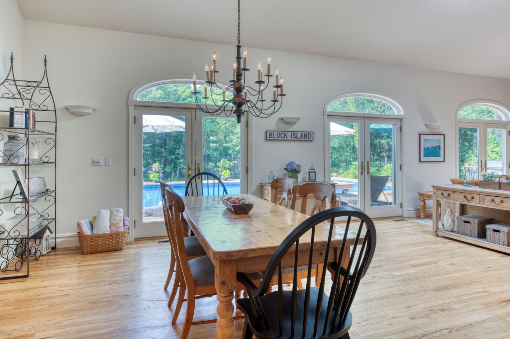 This perfect summer home rental features five bedrooms and four bathrooms, two master suites. Stunning spacious living spaces that feature a fireplace. Kitchen contains all stainless steal appliances. Outside you will find an in ground heated pool surrounding by the deck with a ton of sitting space. Backyard also contains a playground and trampoline. This home is located on a cut-de-sac and only a few minutes from East Hampton oceans and tenni