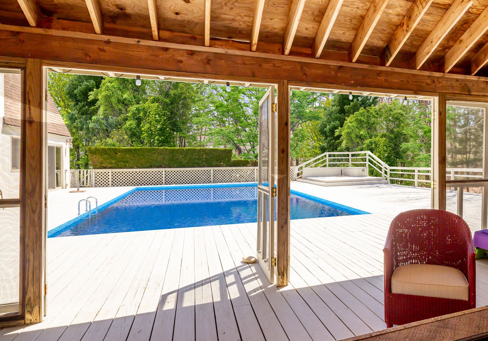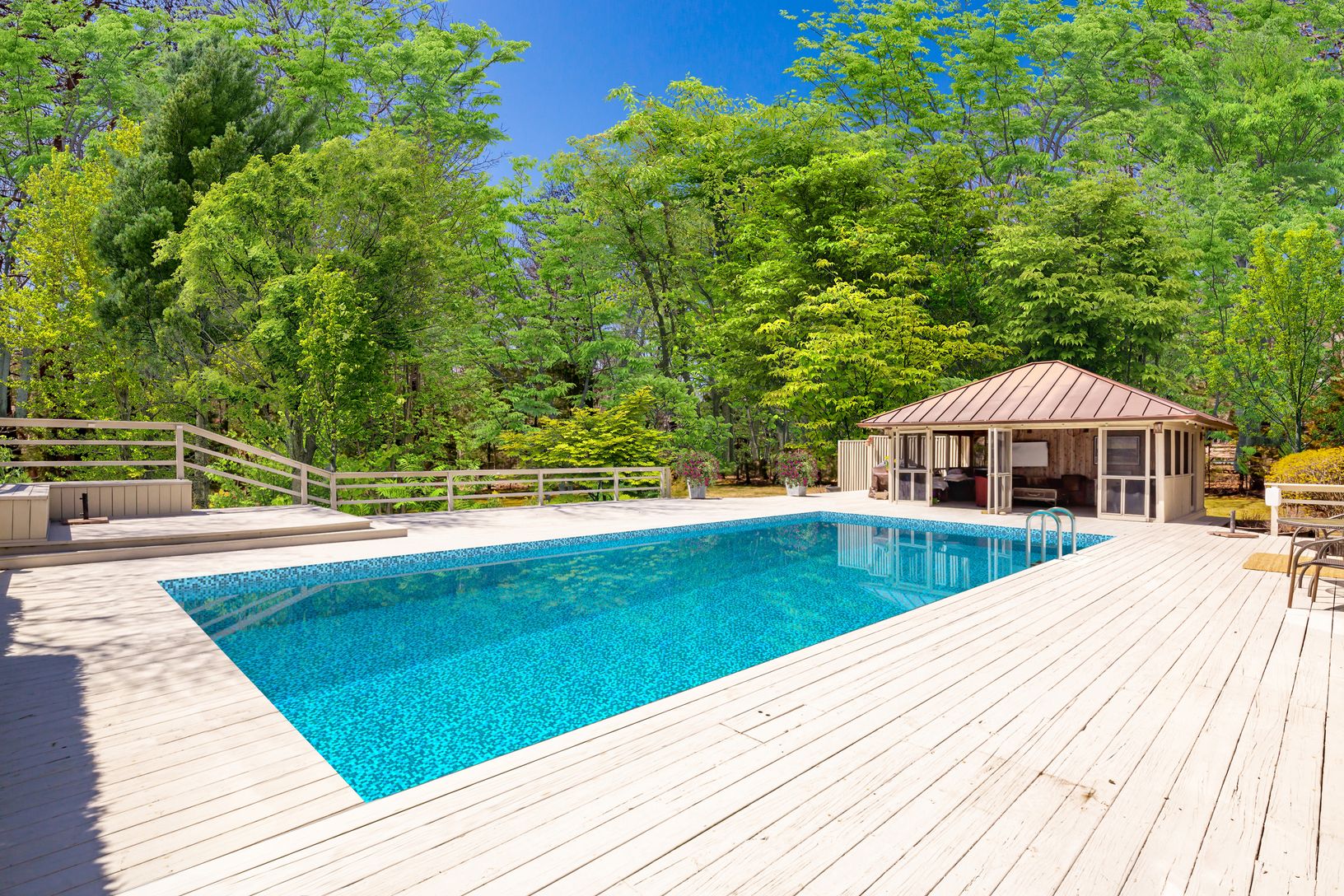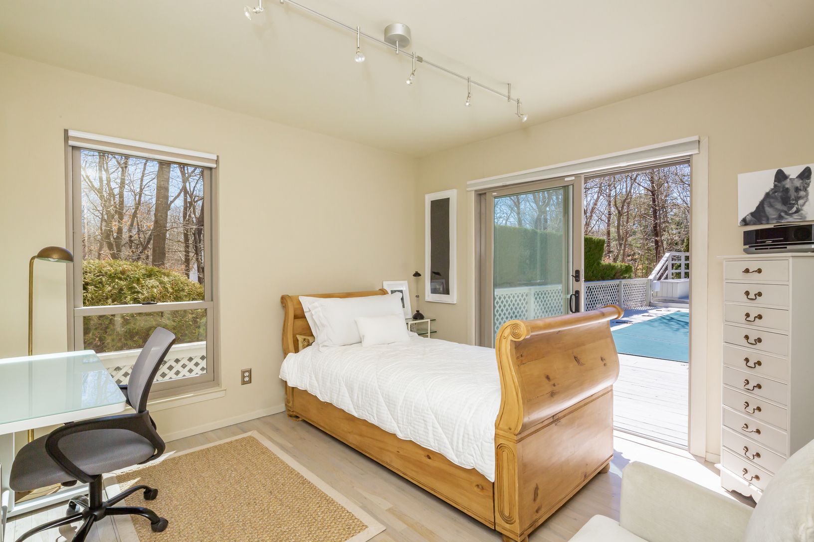 Great rental in Wainscott. Located on a quiet cul-de-sac street and close distance to the local jitney stop and a short way to East Hampton village stores and restaurants. Situated on a one acre lot, enjoy lush privacy landscaping, a maintained yard, and a pool house overlooking the 20x40 heated pool. The living spaces are light filled and airy with wall to wall sliding doors leading to the outside. A recently renovated kitchen, powder bath an