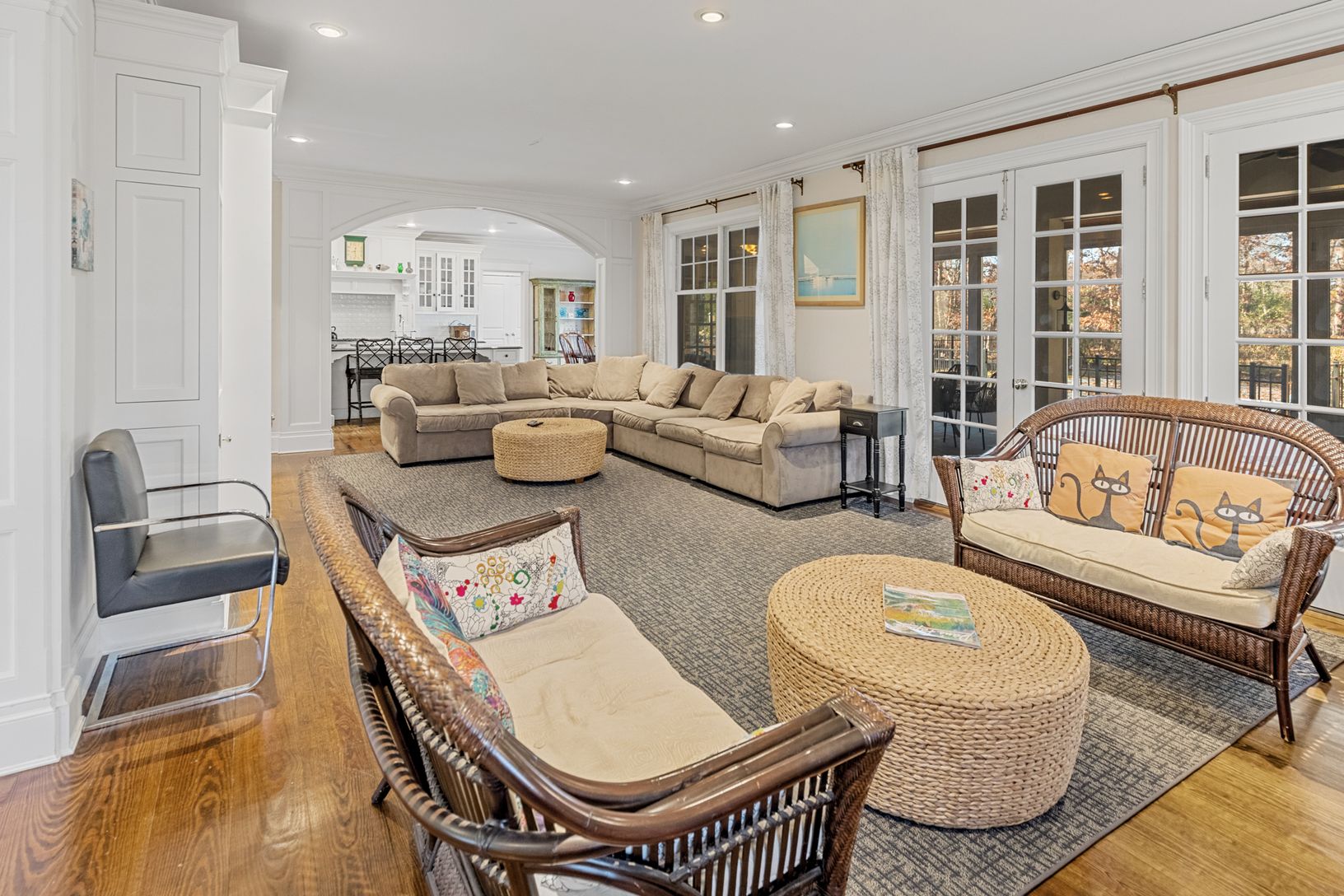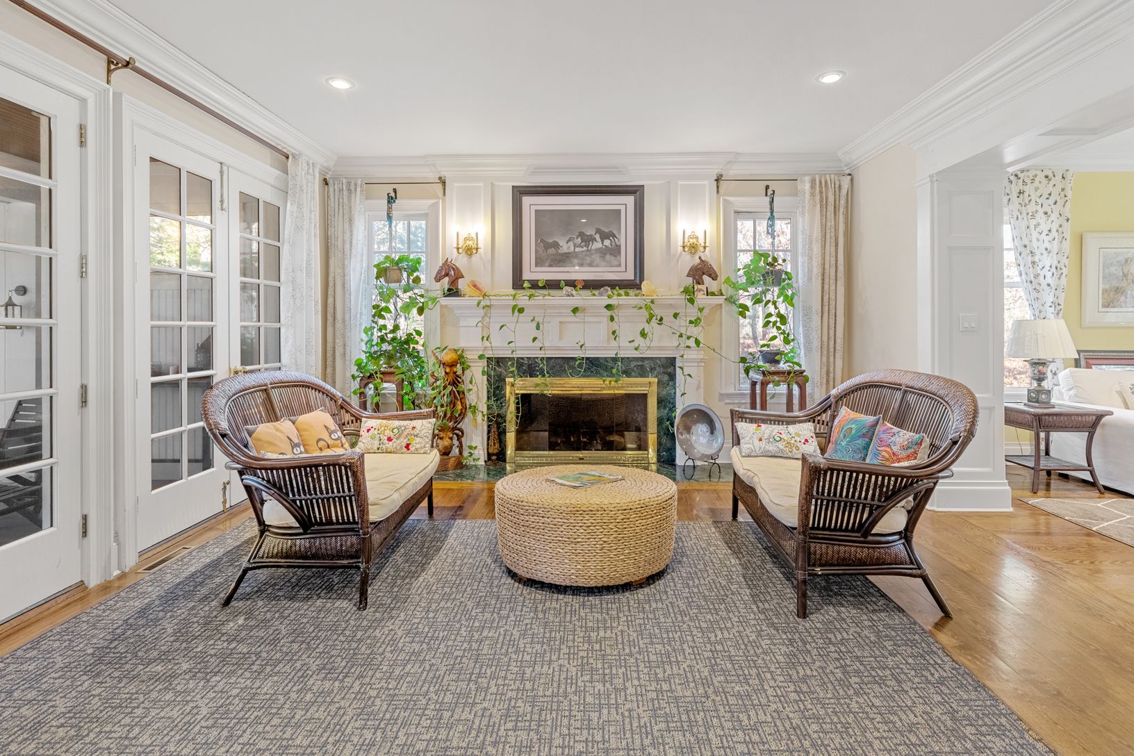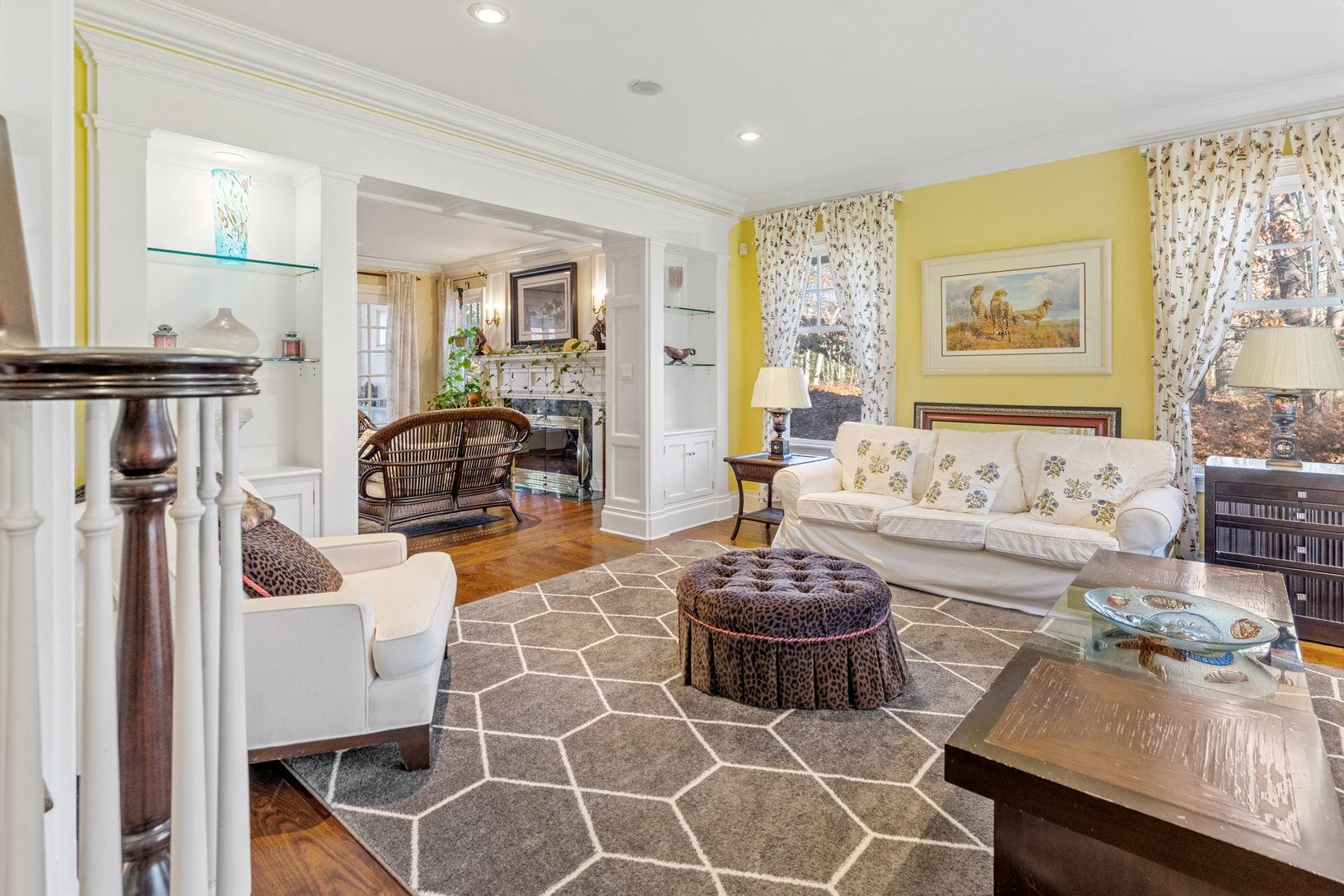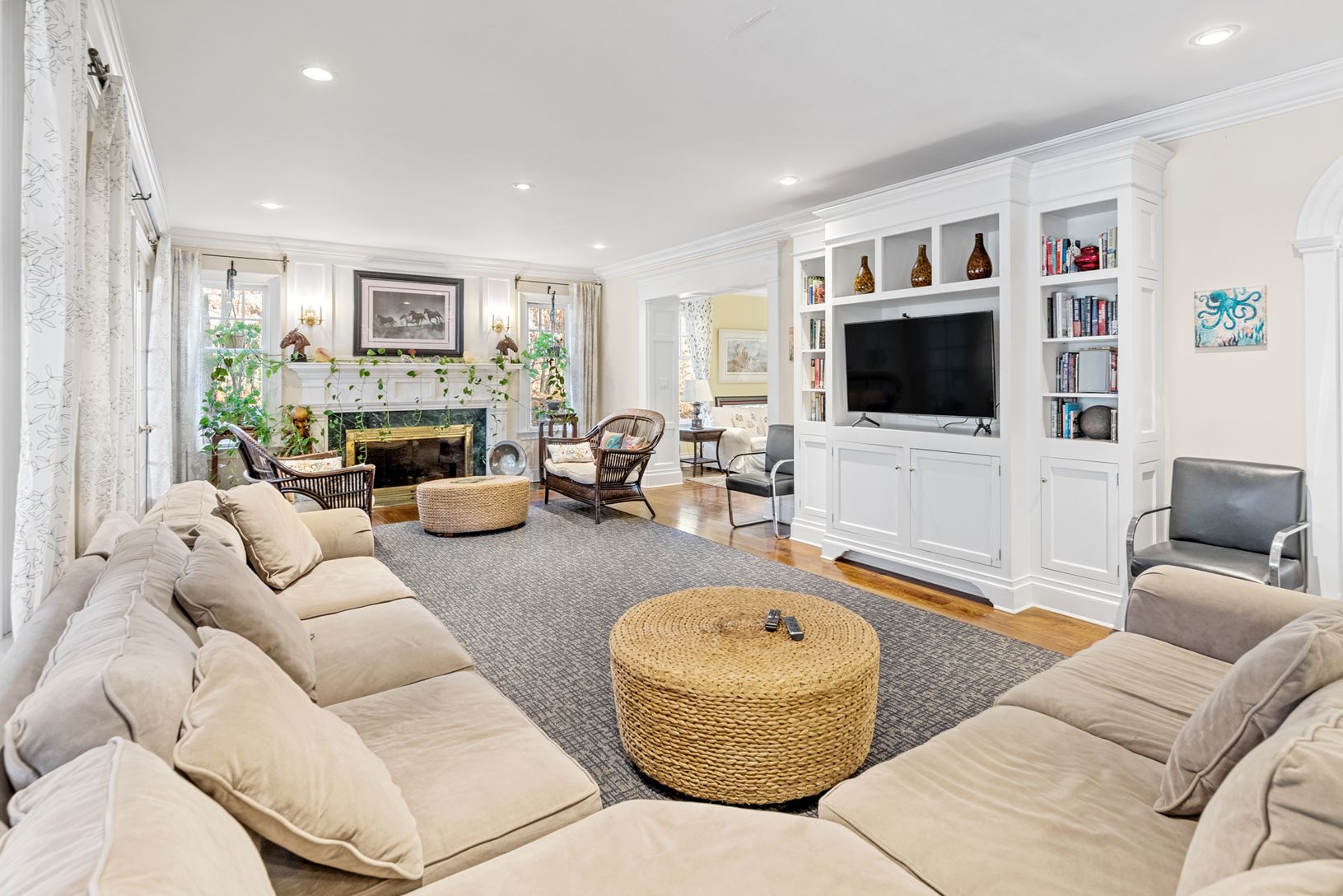 This traditional 5-bedroom, 5-bathroom home offers exquisite attention to detail, spanning over 4,200 +/- sq. ft. Built by renowned architect Peter Curto, the house boasts superior custom cabinetry, crown moldings, and intricate paneling, coupled with a thoughtful layout. The lower level features an impressive foyer, a stunning living room, a charming paneled dining room, and a spacious living room with a gas fireplace that opens onto an overs