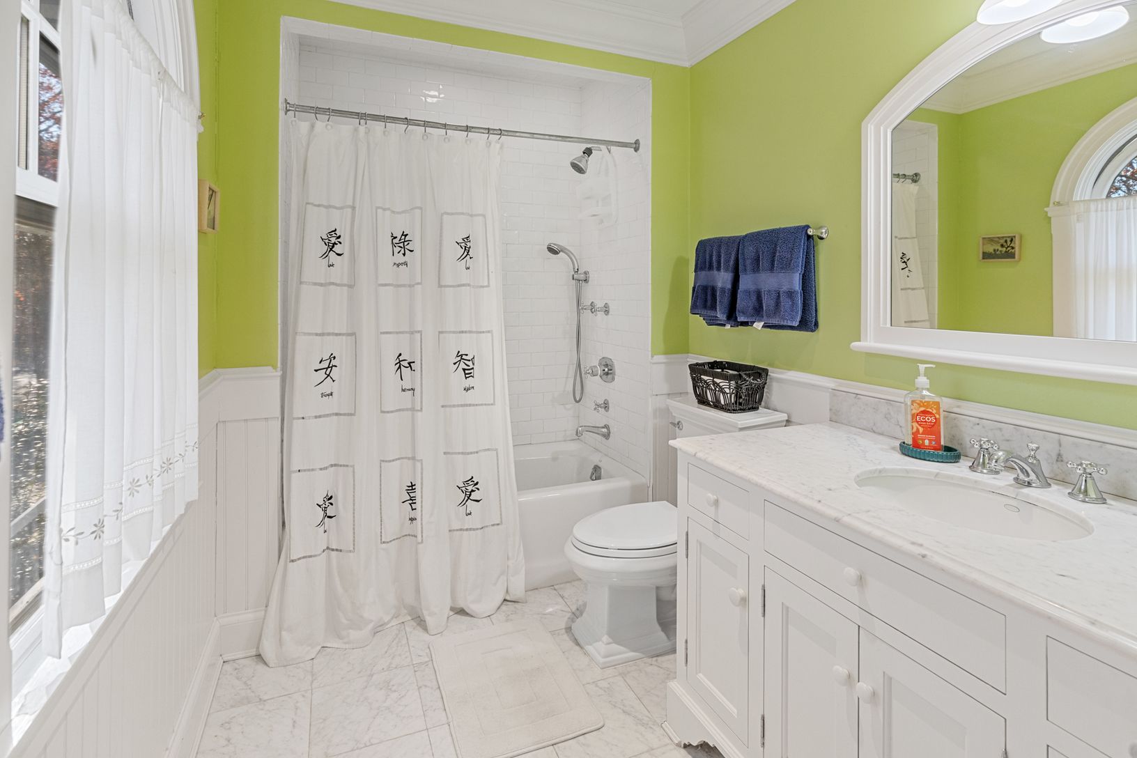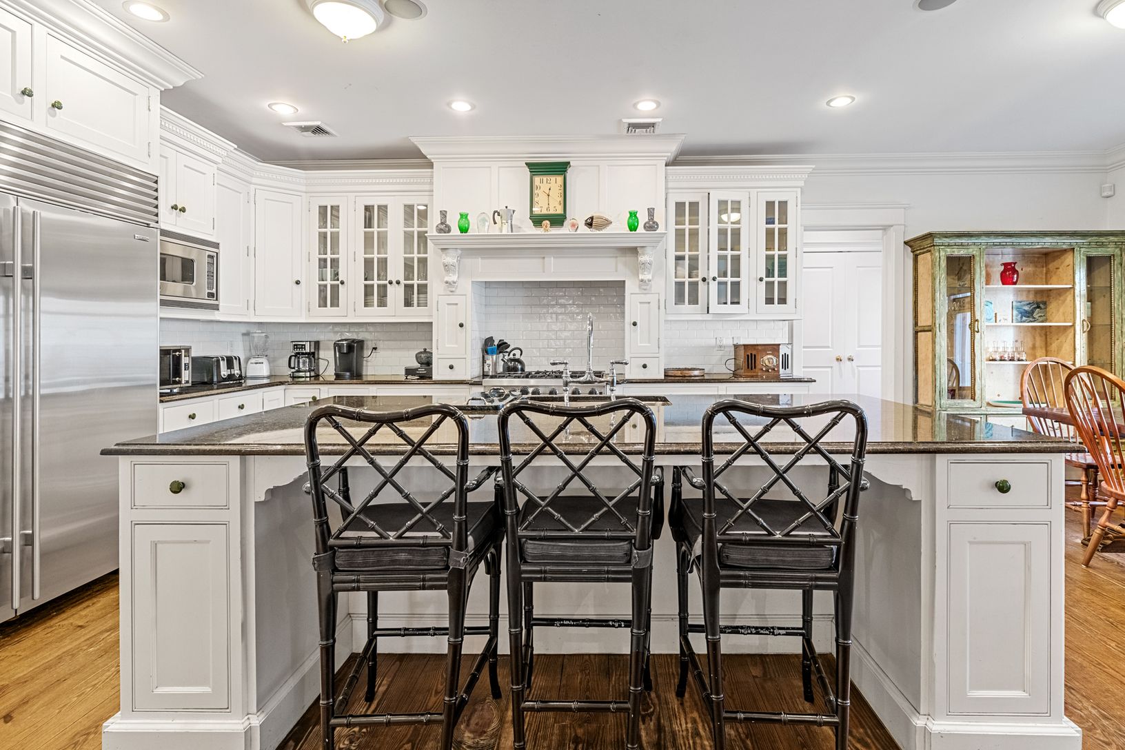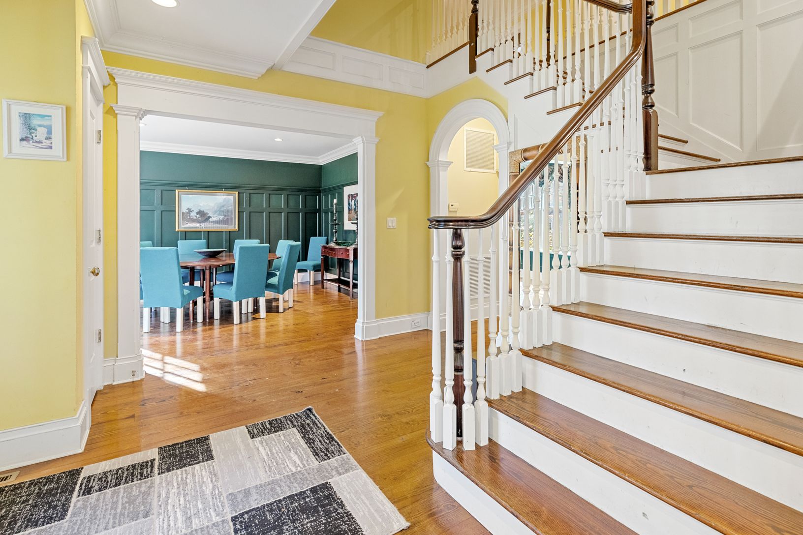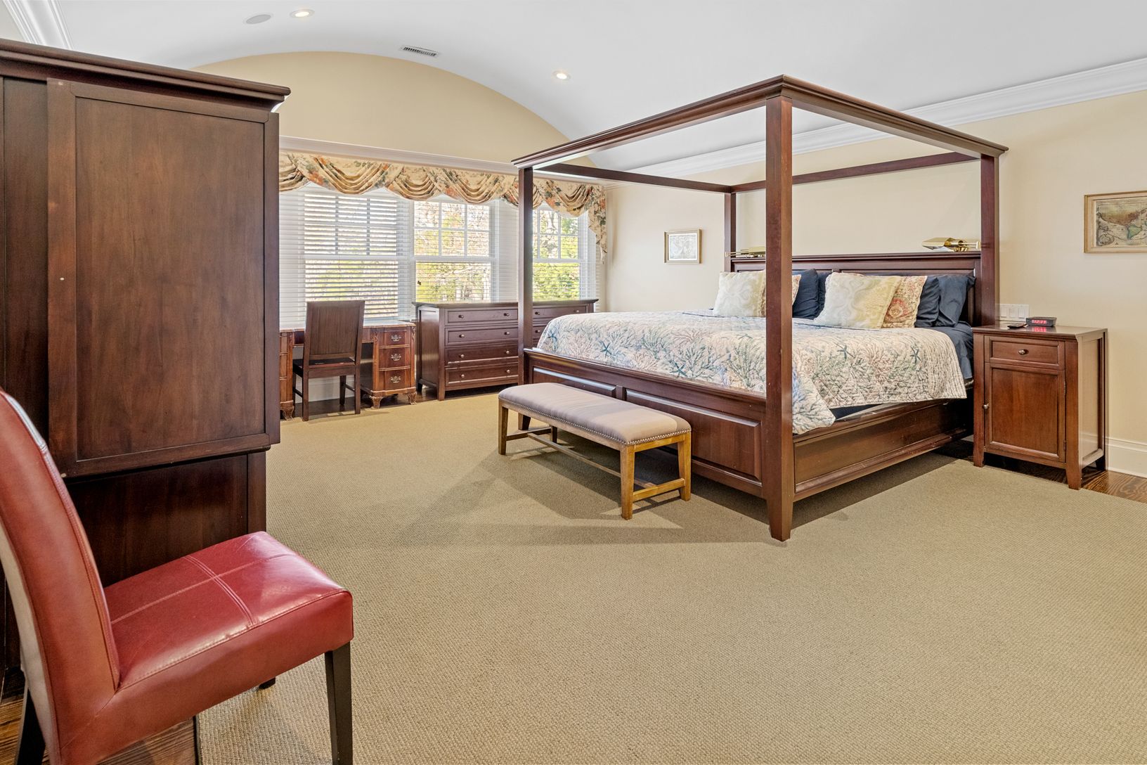 This traditional 5-bedroom, 5-bathroom home offers exquisite attention to detail, spanning over 4,200 +/- sq. ft. Built by renowned architect Peter Curto, the house boasts superior custom cabinetry, crown moldings, and intricate paneling, coupled with a thoughtful layout. The lower level features an impressive foyer, a stunning living room, a charming paneled dining room, and a spacious living room with a gas fireplace that opens onto an overs