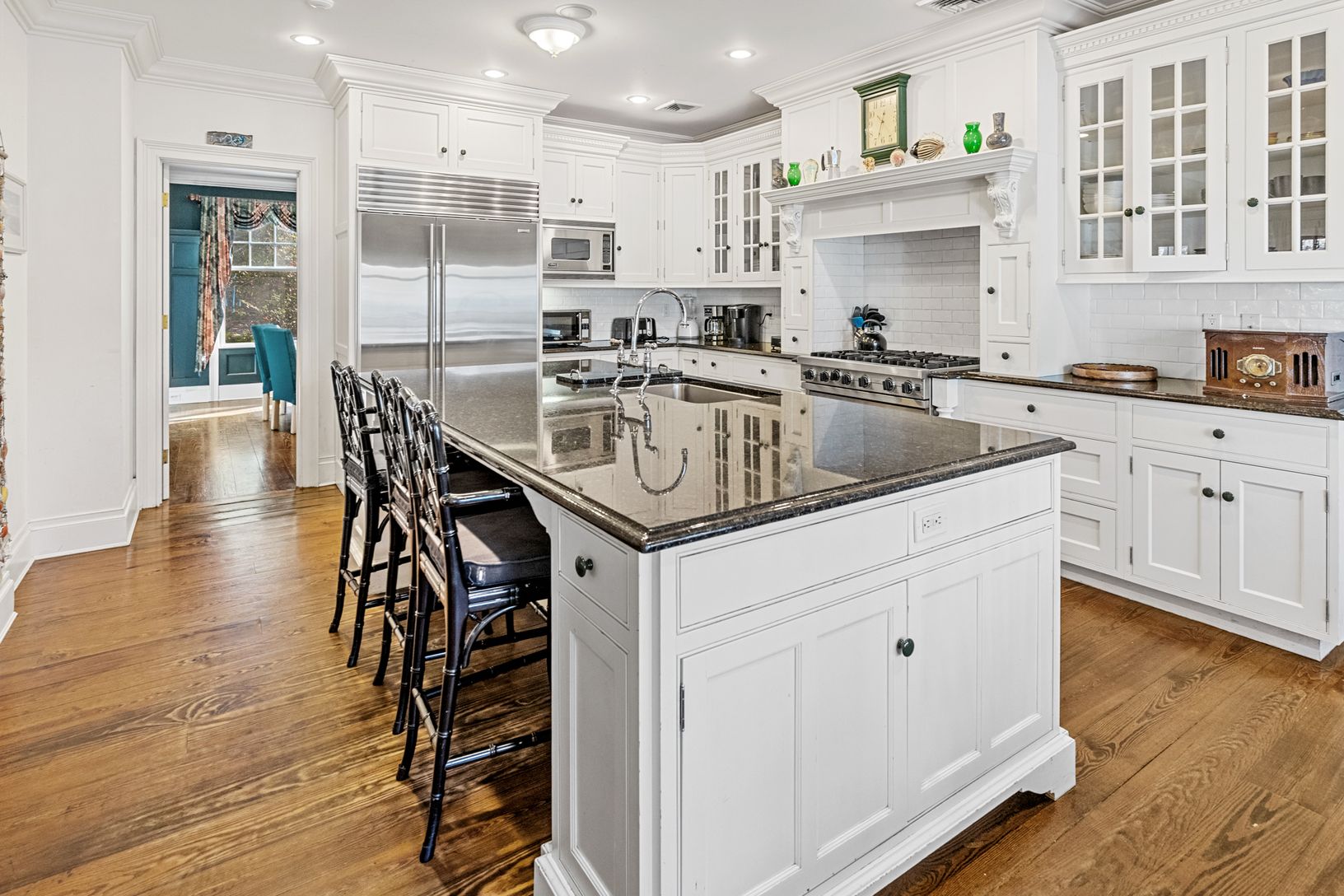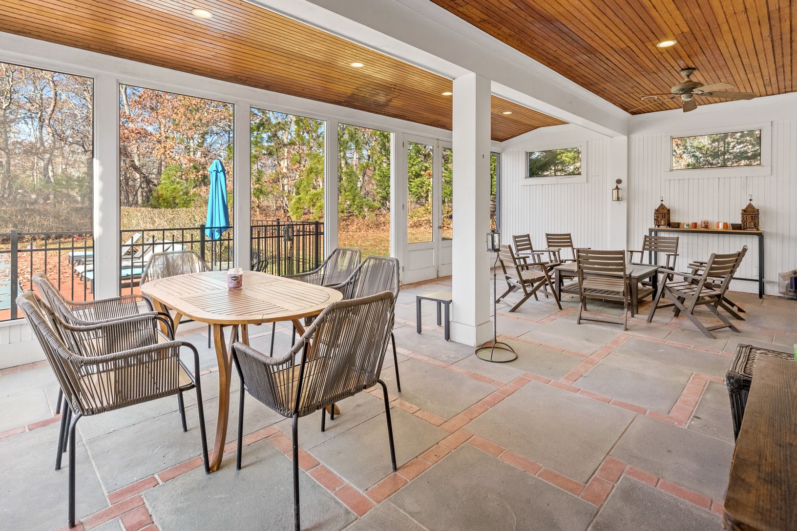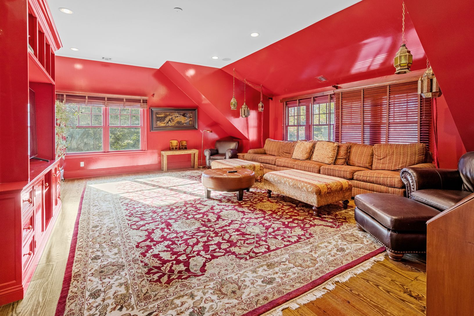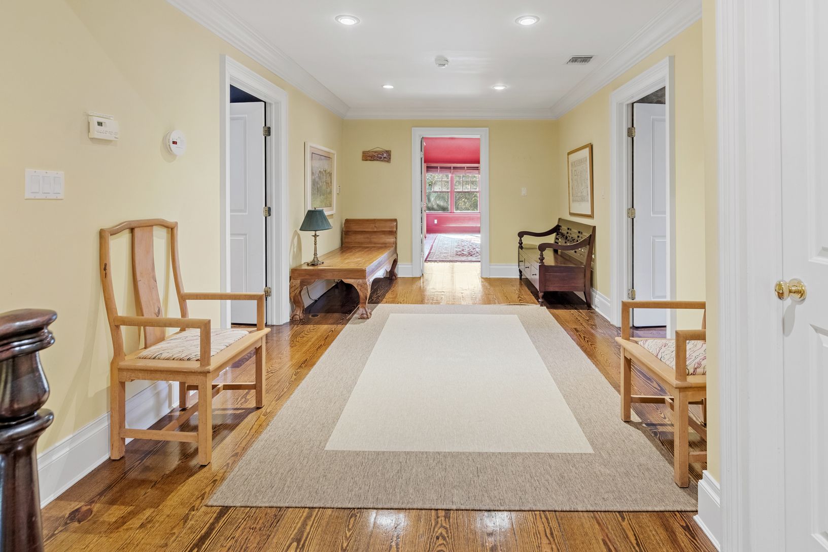 This traditional 5-bedroom, 5-bathroom home offers exquisite attention to detail, spanning over 4,200 +/- sq. ft. Built by renowned architect Peter Curto, the house boasts superior custom cabinetry, crown moldings, and intricate paneling, coupled with a thoughtful layout. The lower level features an impressive foyer, a stunning living room, a charming paneled dining room, and a spacious living room with a gas fireplace that opens onto an overs