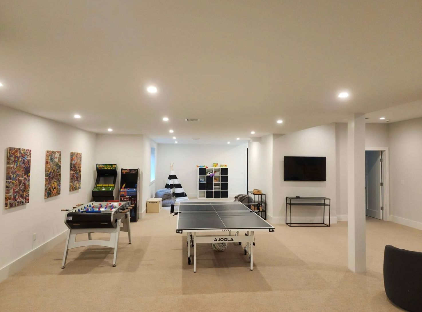 The home features a fully finished basement, two fireplaces, and open-concept spaces including a great room and famil