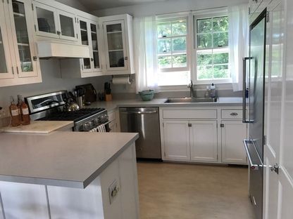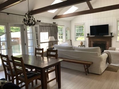 Rental Registration #: 18-333 Bright and cheery traditional style cottage featuring 4 bedrooms, 3 baths, and an open floor plan with cathedral ceilings, exposed beams, and skylights. A delightful country kitchen opens to a dining area with a farmhouse table and a light filled, spacious living room with a fireplace. There is a nice deck off the living/dining area, as well as a beautiful landscaped backyard and brand new heated pool. With its cl